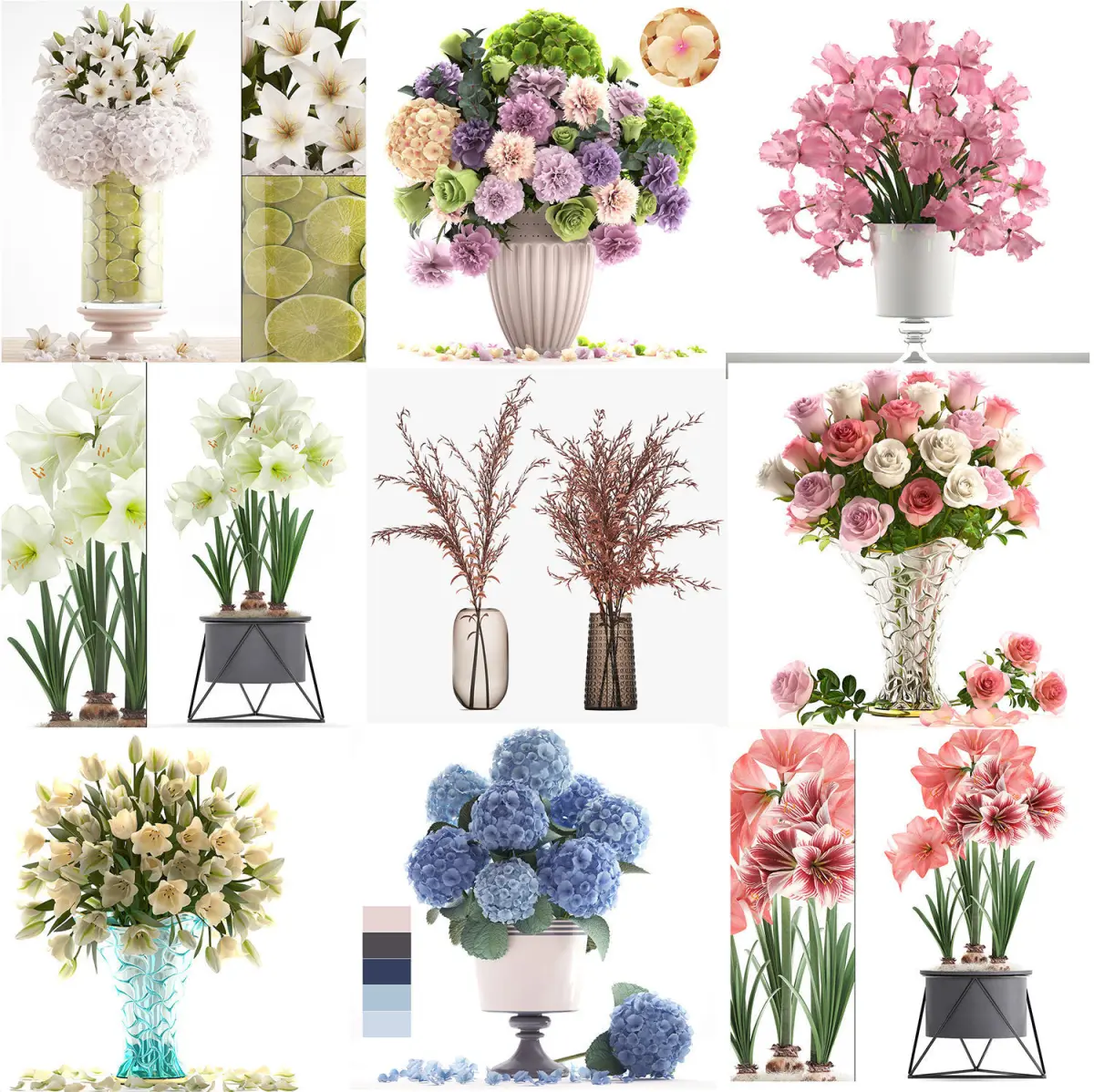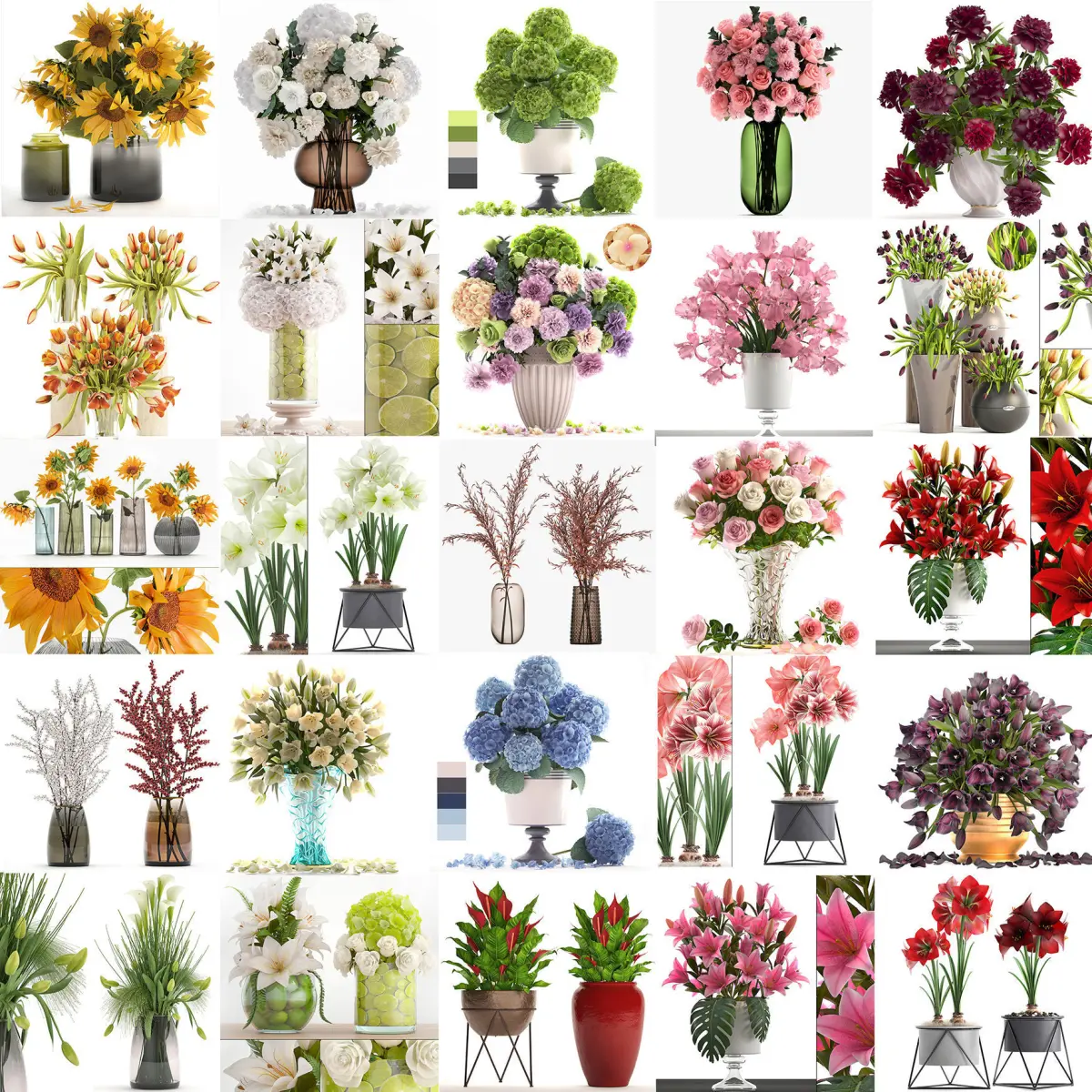 collection of bouquets 39 piecesDecorative bouquets of flowers in vases.Set of spring flowers.White bouquet of flowers, pink bouquet of flowers,Bouquet of green flowers, bouquet of red flowers, yellow flowers, purple flowers, bouquetDecorative bouquets.Bouquet for a celebration, wedding bouquet, table decoration, decor, set.Hydrangea, peonies, roses, lilies, lilac, tulips, sunflower, Hippeastrum, bouquet, bouquets, set, carnations, Spathiphyllum, Iris, peonywedding bouquet, wedding flowers, wedding decoration
