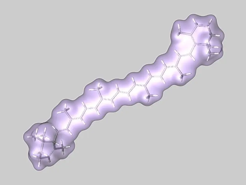 Carotenes occur naturally in plants but (with few exceptions) not in animals. Carotenes are important for photosynthesis. They absorb UV and blue light and scatter orange / red light. Carotenes are responsible for the orange colour of carrots and many other fruits & vegetables, _e.g. _sweet potatoes. ß-Carotene is broken down in humans to form retinal, a form of vitamin A.