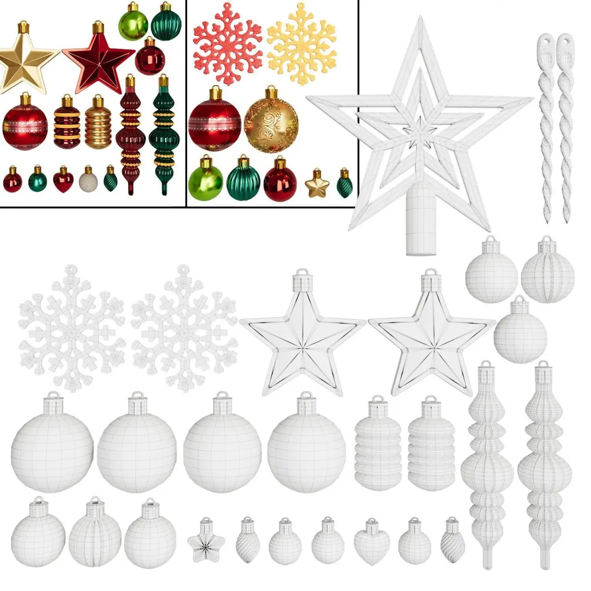 Model Name: Collection Of Christmas Tree OrnamentsType of Models: 2 - In Box and SeparatelyNumber Of Decor Ornaments: (Default) 78 ornamentsModel Type: modelModel Format: 3Ds Max 2016Export: OBJRender: Corona (9,)Polys: 1625134Verts: 1638867Units: MillimetersDimension: 969.7 x 431.14 x 379.89Modeller: WhitePantherReference by: Amazon.com
