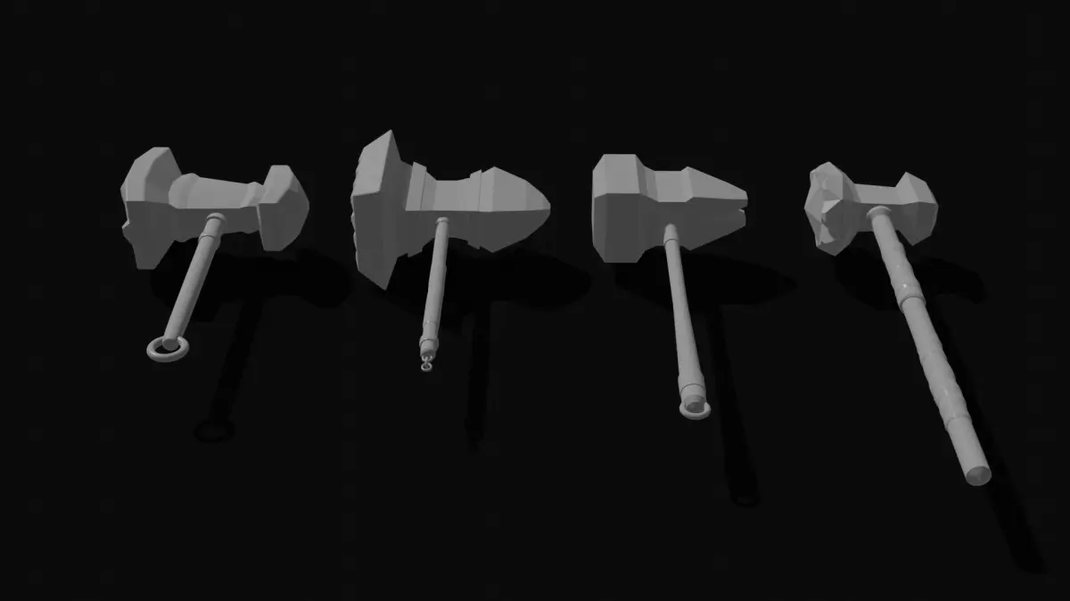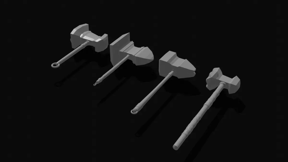 Mini-collection of fantasy hammers in a minimalist style. Perfect for projects in the genre of science fiction and fantasy. These hammers can be used by warriors of various fantasy universes: from dwarf warriors to human knights.Low-poly. No materials or textures.