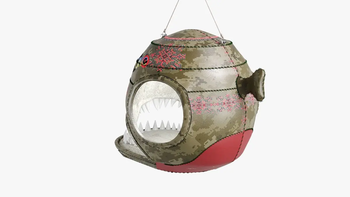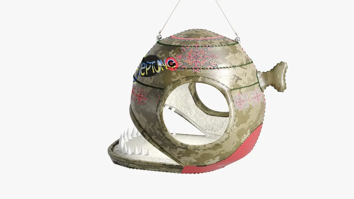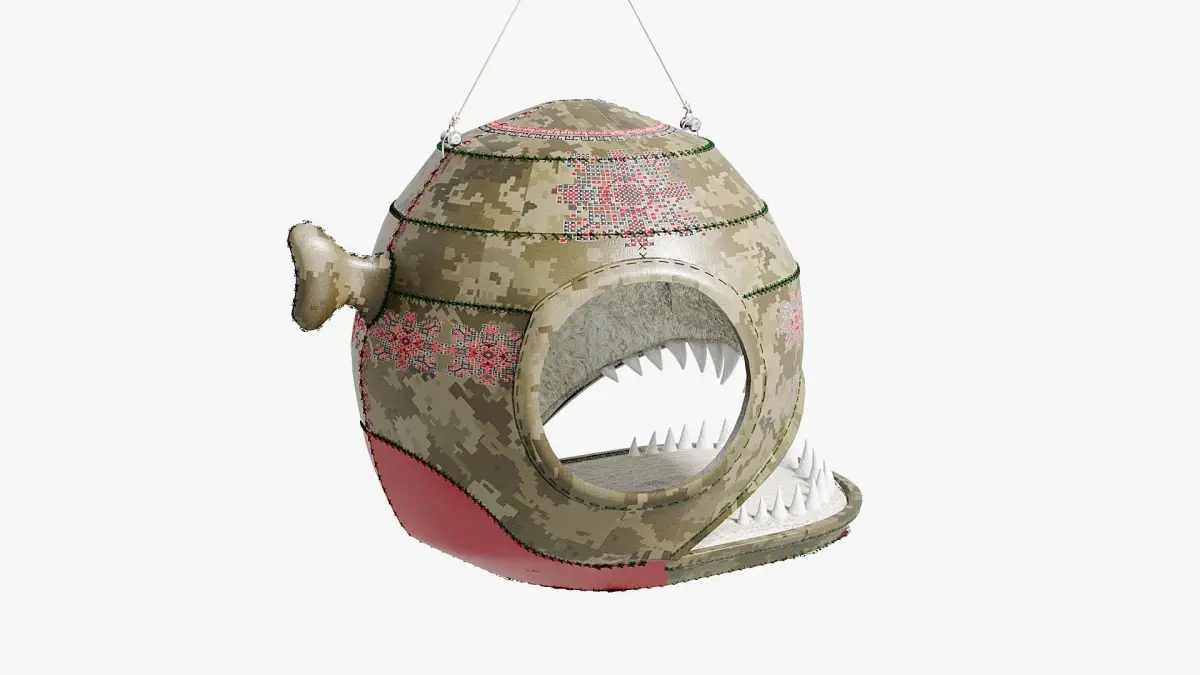 This collection features 3 hanging chairs designed by Porky Hefer. The piranha model is presented in 3 colors - the original green color and No. 2 and No. 3 - camouflage with my Neptune rocket logo and Ukrainian ornaments