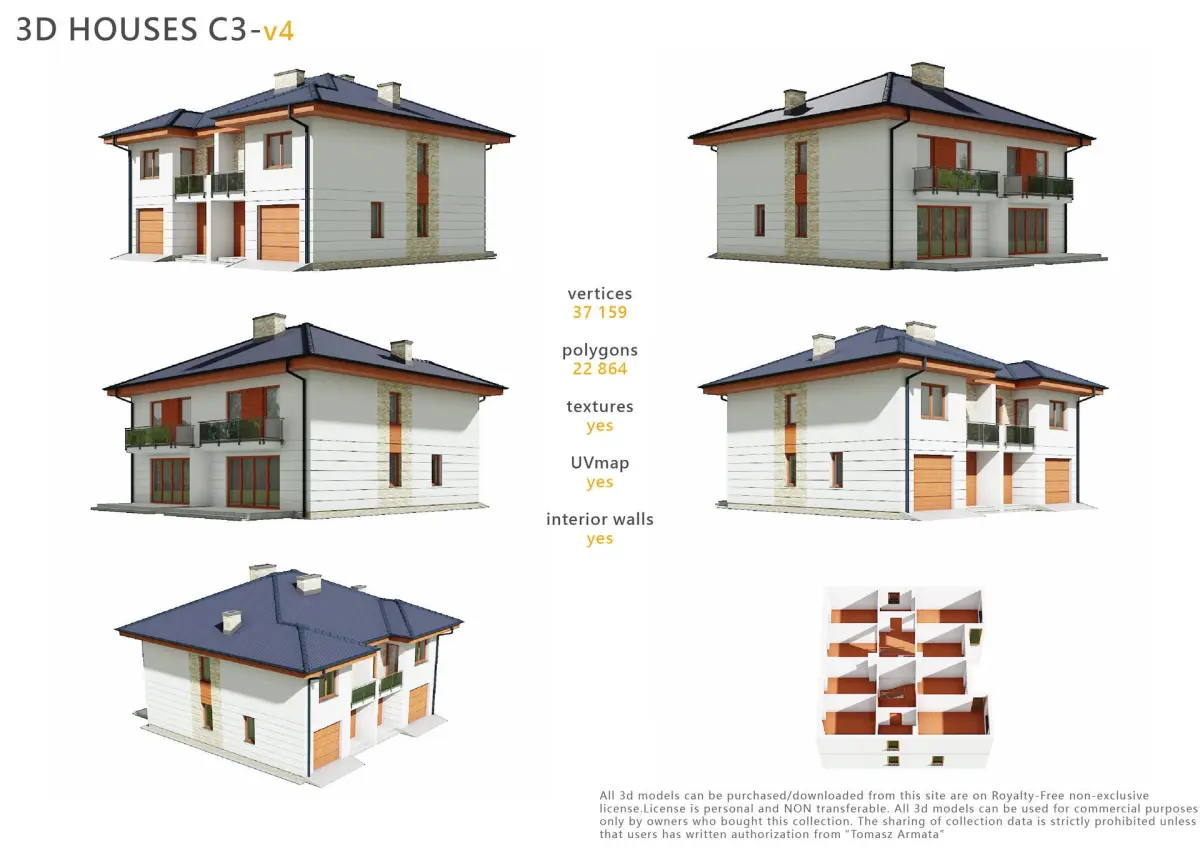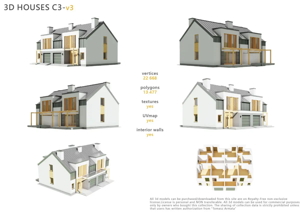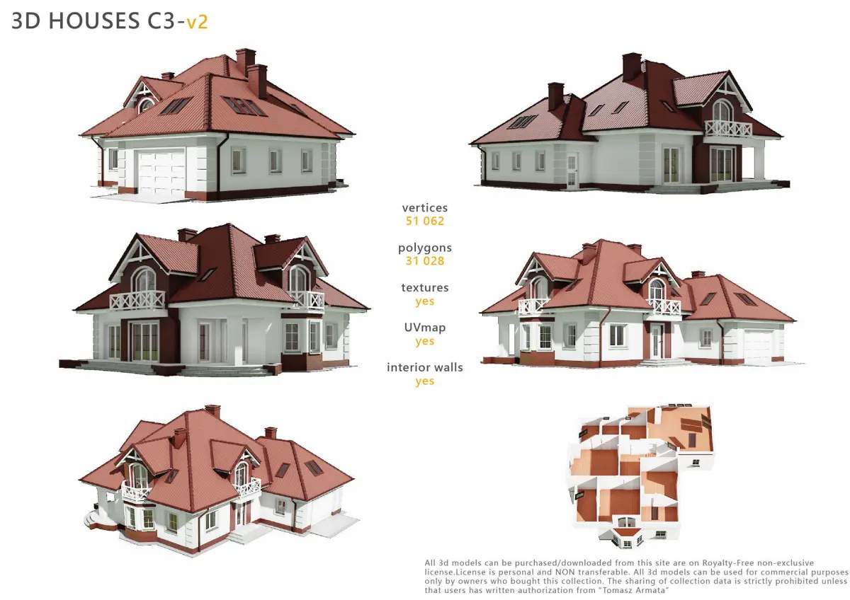 third 12 houses- 99,90$https://www.cgtrader.com/3d-model-collections/collection-of-houses-3-full-12models