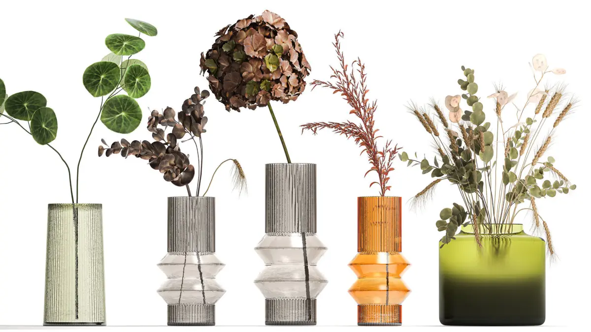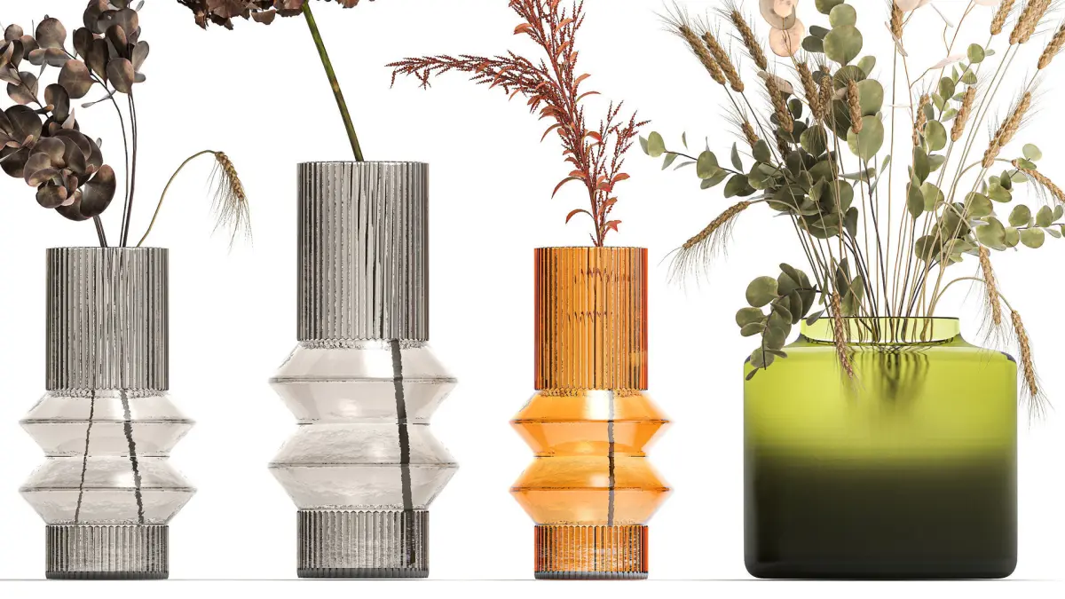 A collection of minimalist bouquets of flowers in modern glass vases with hydrangea, spikelet, moonflower, stephania. Set 322.Decorative Bouquet of green flowers in a glass vase for decoration and interior.Bouquet of green flowersluxury decorvase - RILLA VASE - NORDALHydrangea - HydrangeaSOLIDAGO - Goldenrod, Solidago (dry, stabilized, colored)HydrangeaBerberis - Barberry barberryDried flowers, dry grass.Triticum, spikelet - wheat, spikeletLunaria - lunar, lunariaStefania Erecta - Stefania Erecta