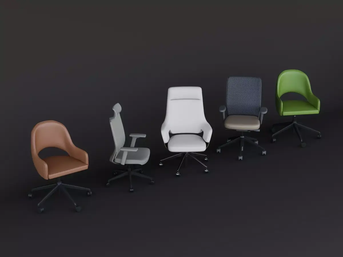 This collection includes realistic 3D models of modern office chairs, featuring multiple designs in various colors and styles. Perfect for office interior visualizations, product renders, or animations. Each model comes with high-quality textures and detailed geometry for realistic results.