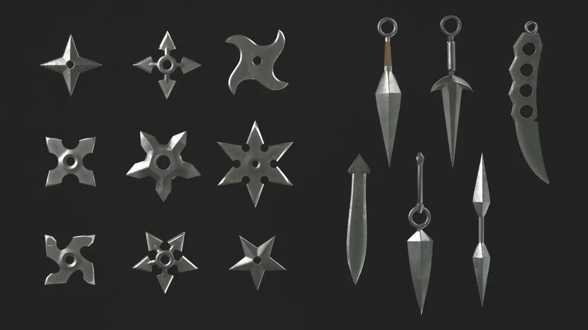 Collection of Ninja Weapons **High-quality PBR textures in 2K and 4K resolutions, including **Color, Metallic, Roughness, Normal Ambient Occlusion