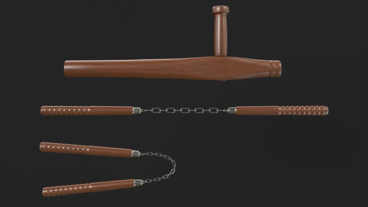 blend: Complete Blender scene featuring Collection of Ninja Weapons Brown model and all associated textures.
