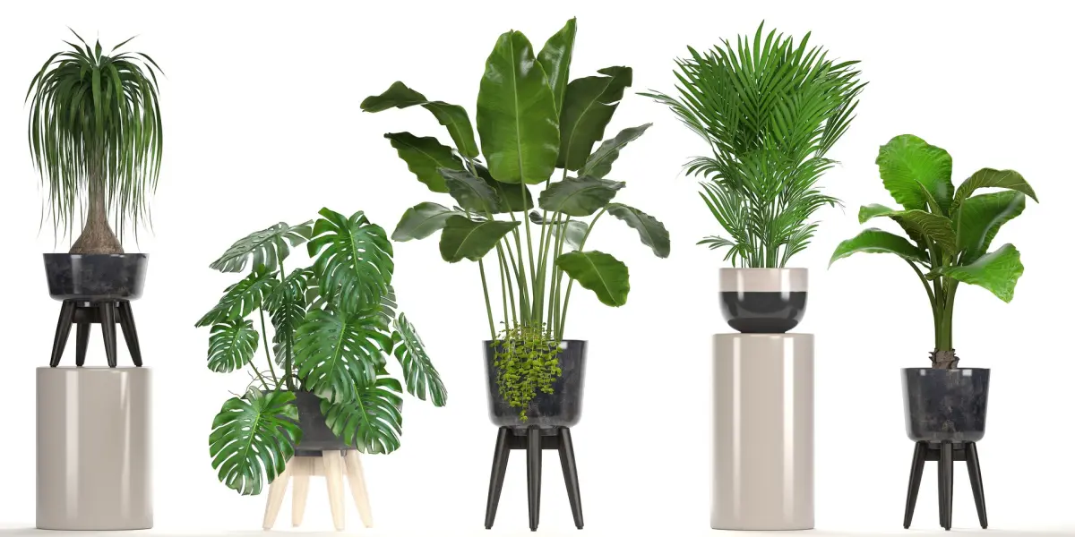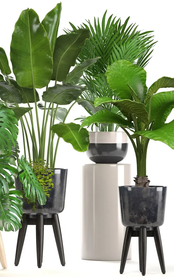 Collection of ornamental plants in pots
