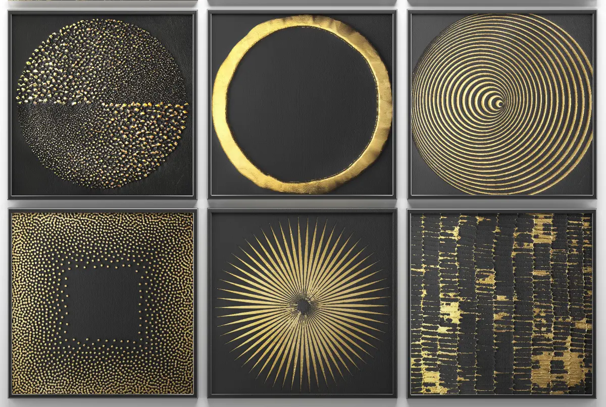 Collection of paintings with gold for walls 2 3D model