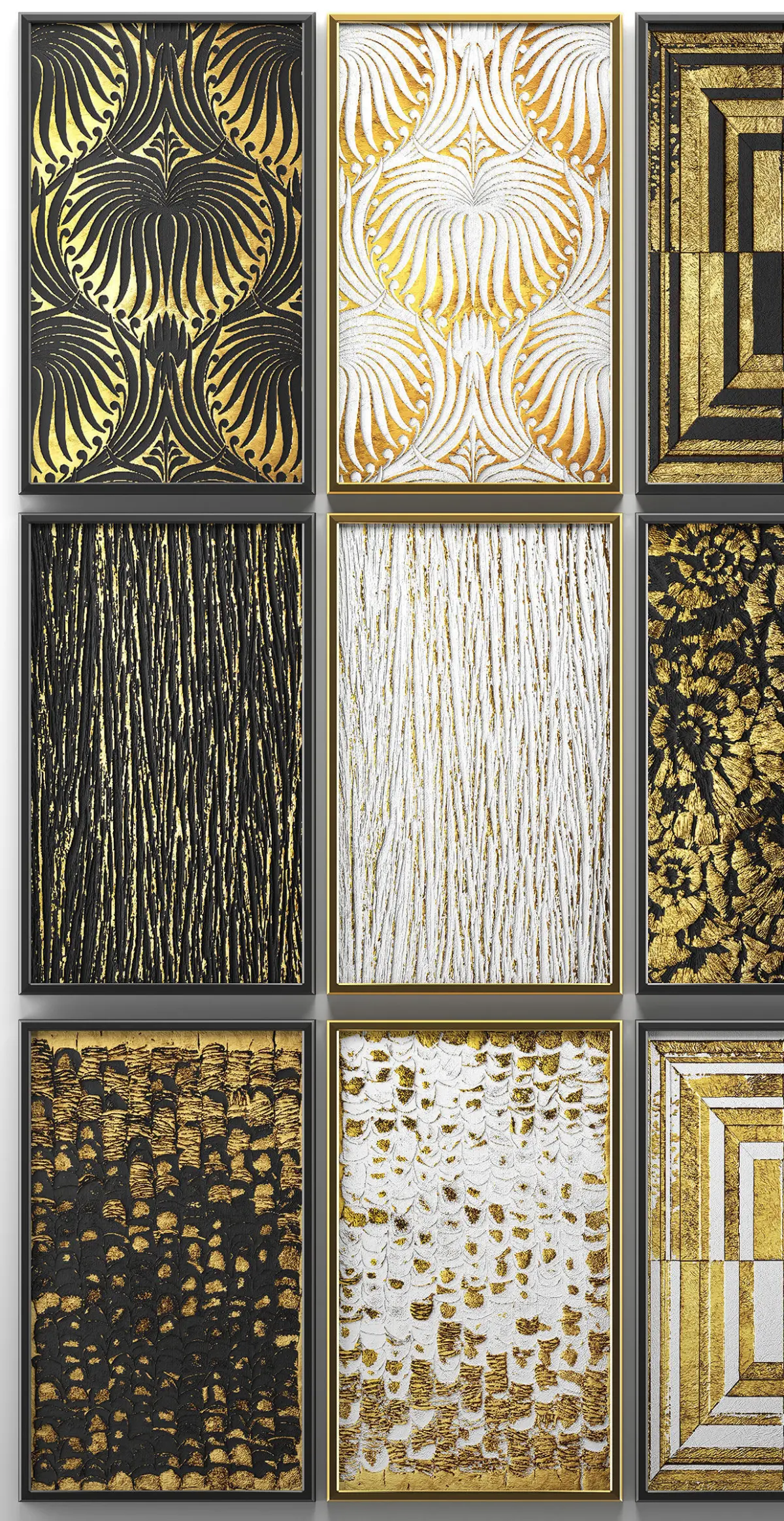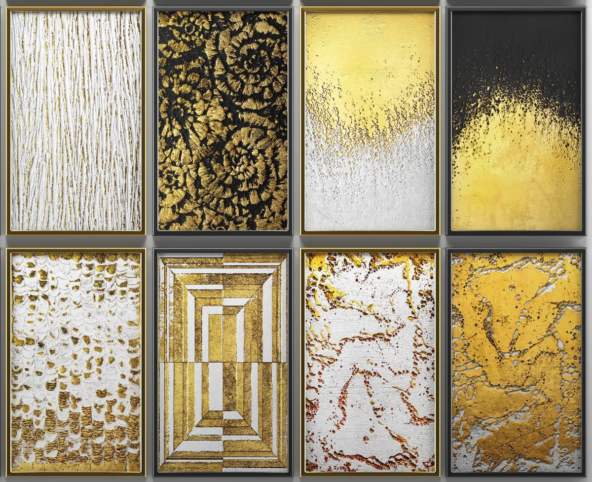 Collection of paintings with gold for walls 4 3D model