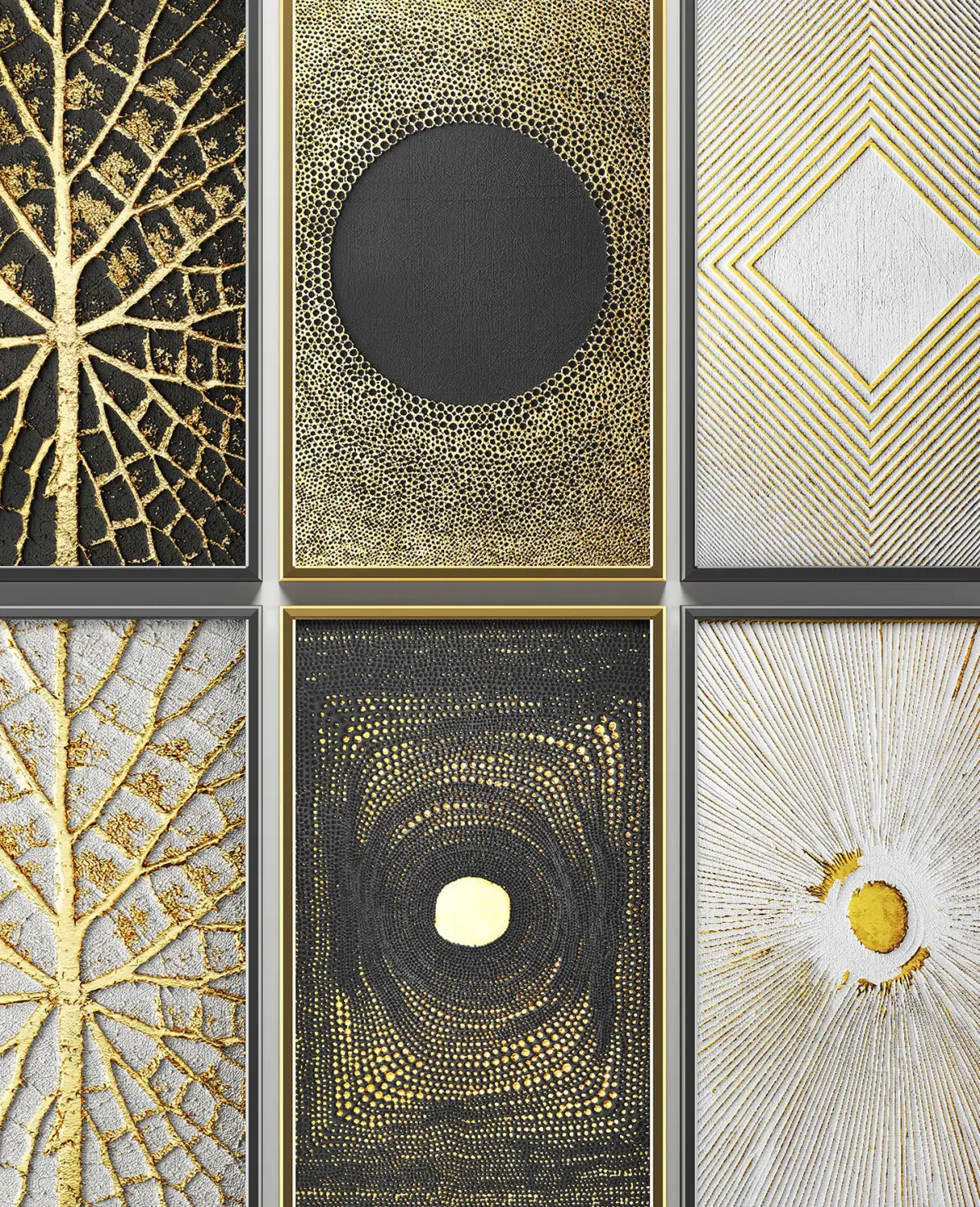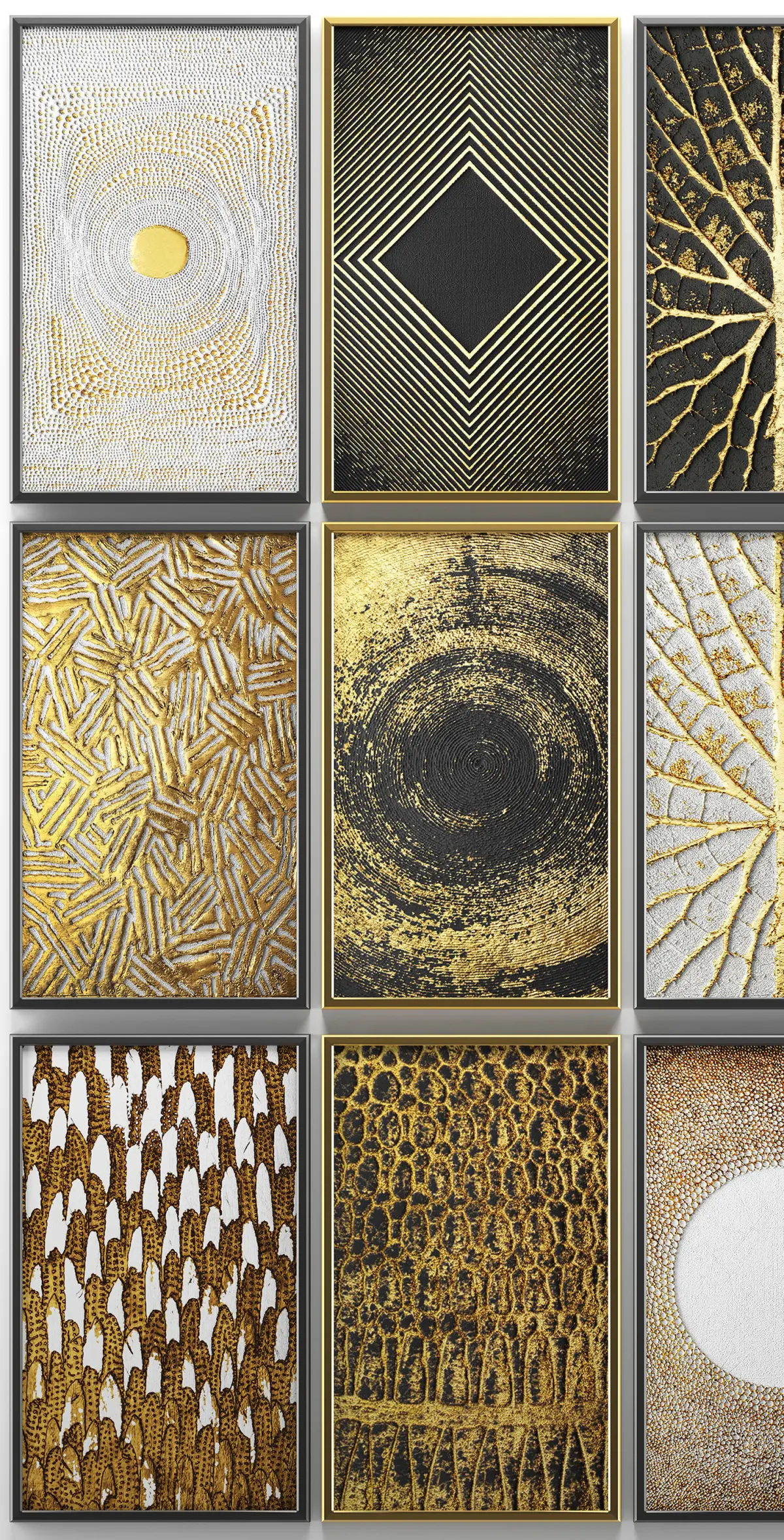 Collection of paintings with gold for walls 8 3D model