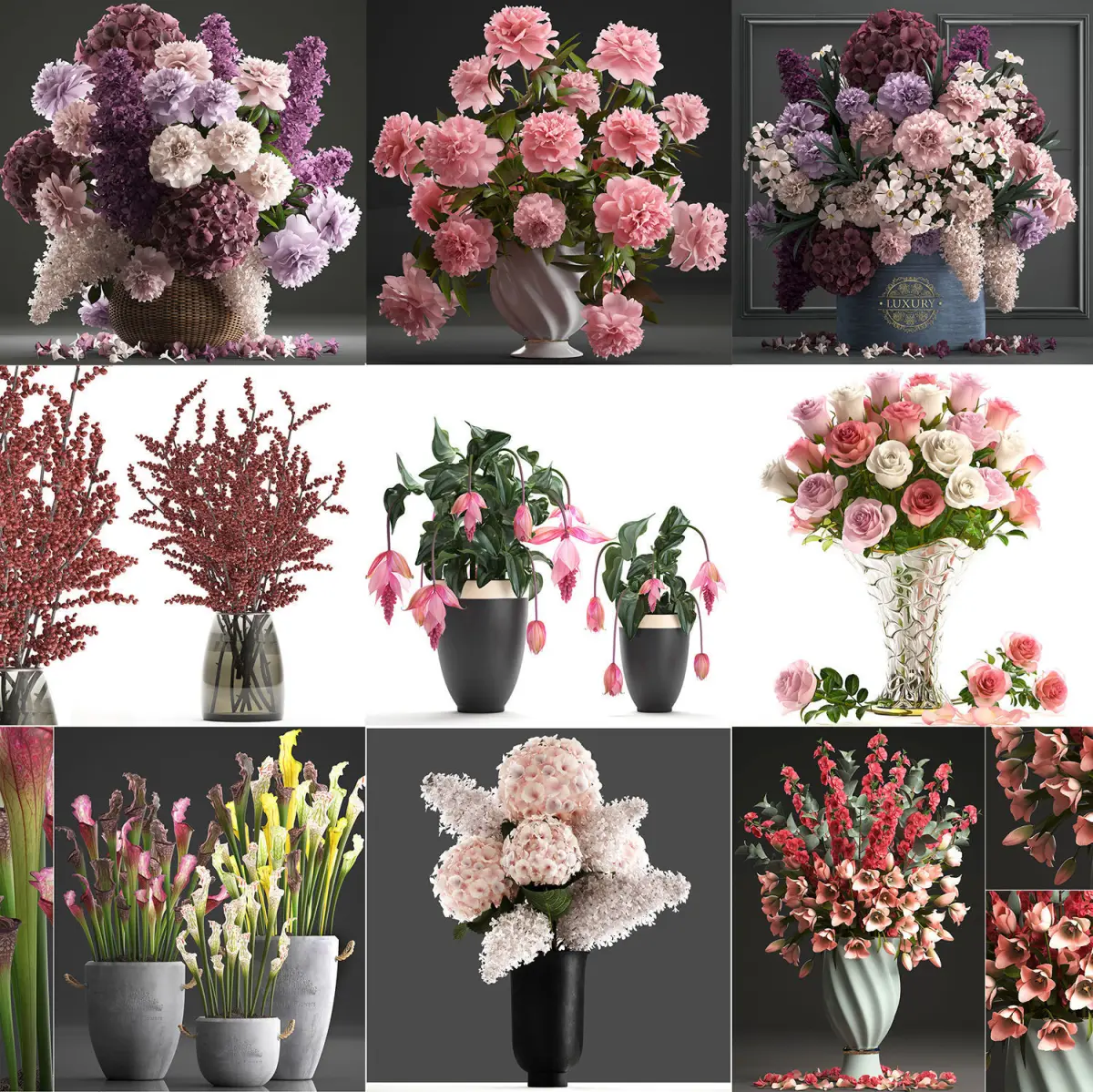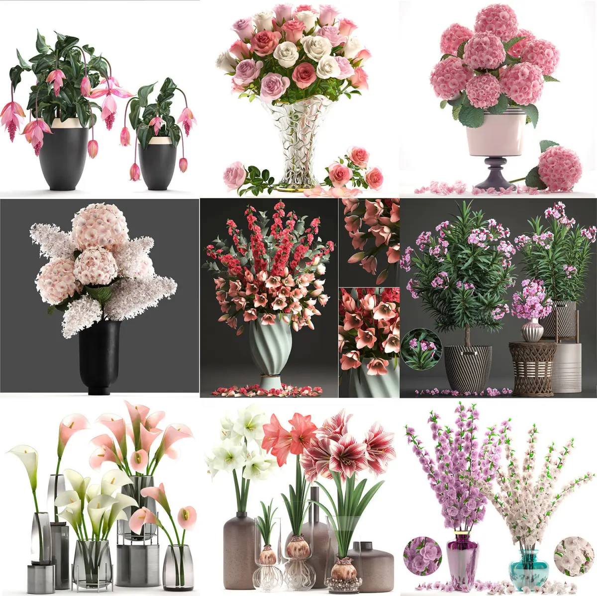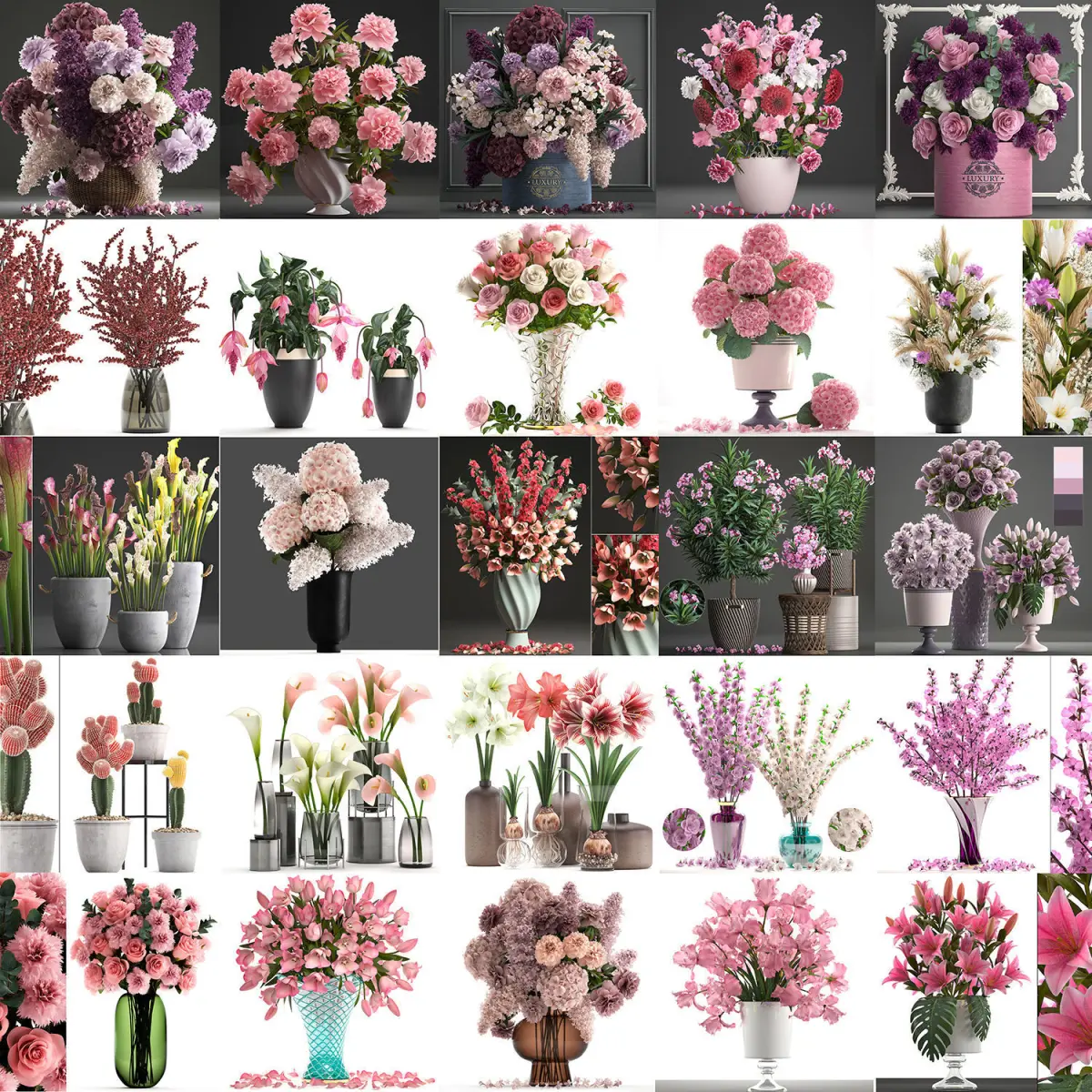 Collection of pink flower bouquets in vases 40 piecesDecorative bouquets of flowers in vases.Set of spring flowers.White bouquet of flowers, pink bouquet of flowers,Bouquet of flowers, bouquet of red flowers, flowers, purple flowers, bouquetDecorative bouquets.Bouquet for a celebration, wedding bouquet, table decoration, decor, set.Hydrangea, peonies, roses, lilies, lilac, tulips, Hippeastrum, bouquet, bouquets, set, carnations, Iris, peony, sakura, ilex, cactuswedding bouquet, wedding flowers, wedding decoration