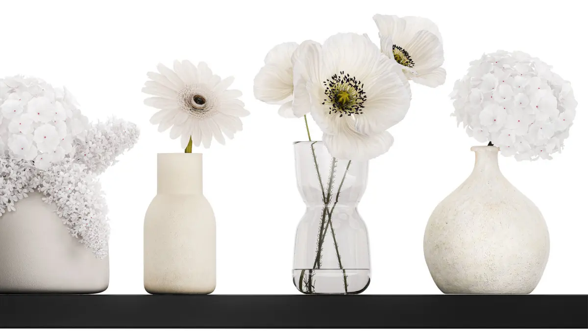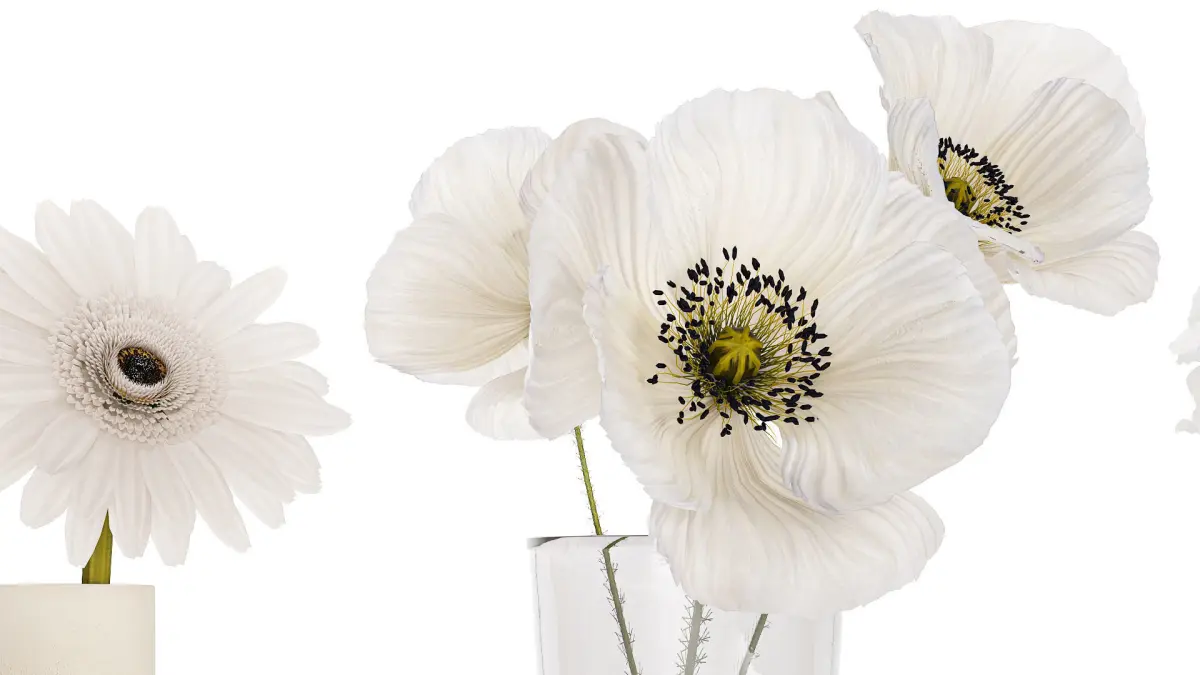 Collection of small bouquets of white flowers in modern vases with Poppy bare-stemmed. Set of bouquets 475.Decorative Bouquet of white flowers in a glass vase for decor and interior.Bouquet of branches and flowersbouquet of green leaves and branchesvase with branches, branches in a vaseCorylus, filbert, Hazel - Hazel, hazelhydrangea - white hydrangeaSpring bouquetlilac, Syringa - white lilacPapaver nudicaule - Poppy bare-stemmed, Icelandic poppyGerbera - Gerbera, DetailsZerbera