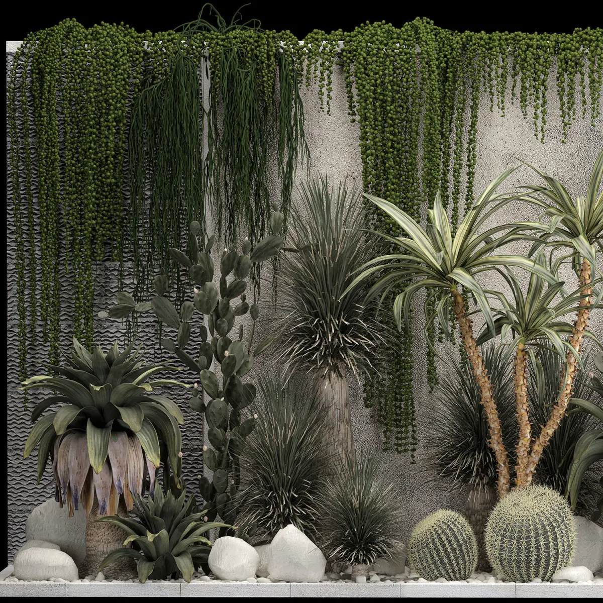 Collection of tropical desert plants from cactus with hanging plants.Bushes and thickets of plants, tropical garden, vertical garden, vertical gardening, flowerbed with plants and bushes, landscaping, phytowall, phytomoduleHouseplantsexotic plantsRhipsalis baccifera - Ripsalis, Ripsalis.Senecio rowleyanus, Pearls succulent - Rowley's ragwort (String-of-pearls)succulentsSucculents, climbing plants, decor, Groundsel, phytowall, phytomodule, flower gardenColumn Cactus, Saguaro Cactus - carnegiaCereus - Trichocereusgarden cactusBarrel cactus, EchinocactusBromeliaYucca rostrataDracaena fragransPrickly pear, Opuntieae, Opuntia microdasys