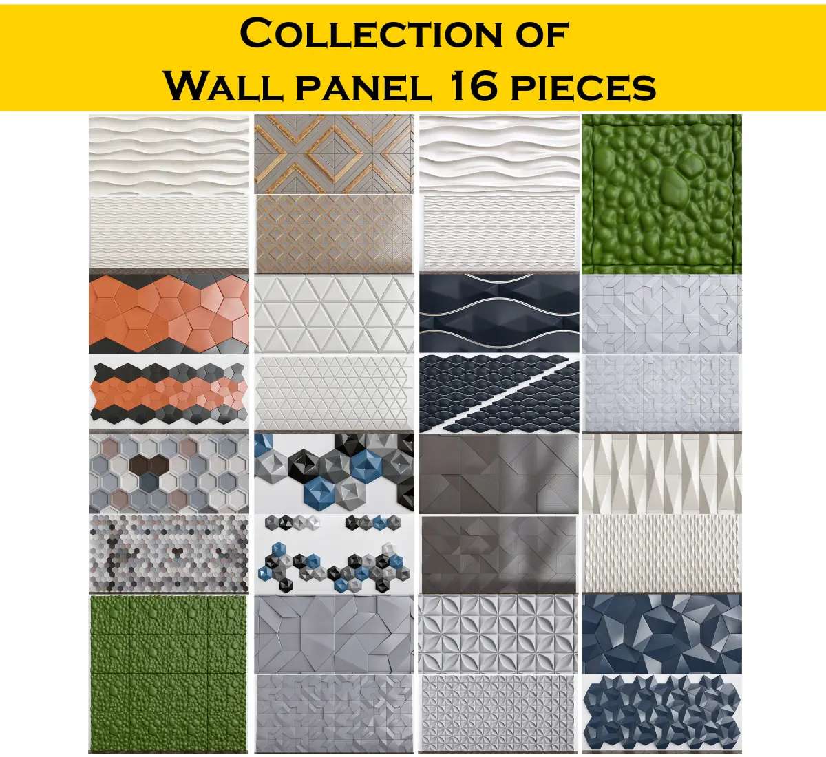 Collection of Wall panel 3d model 16 pieces Low-poly 3D model
