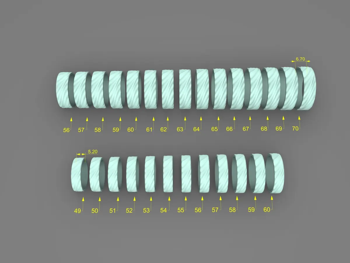 Male rings are 6.7mm widе. Female rings are 5.2mm wide. The thickness of the rings is 1.7mm. The profile of the rings is a slight comfort.There are archived file packs where the different ring sizes are saved in separate files in case you don't have the option to separate them.