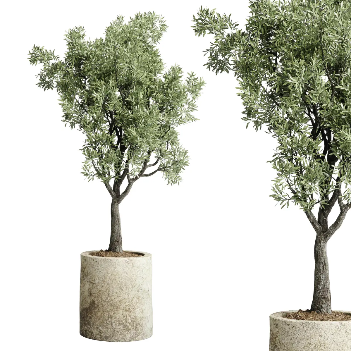Collection outdoor plant 65 pot old olive tree concrete old vase 3D model