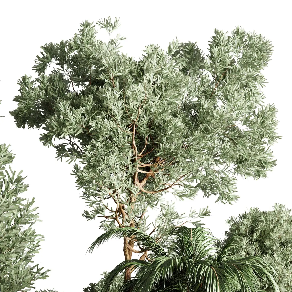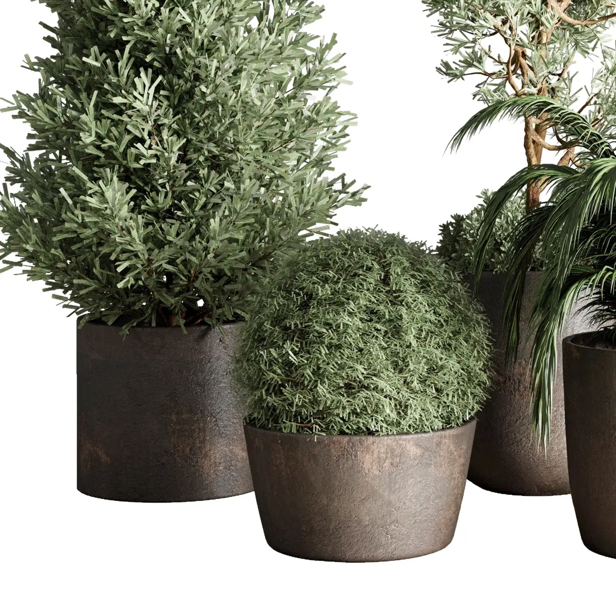 Collection Outdoor plant concrete dirt vase pot tree bush palm 3D model