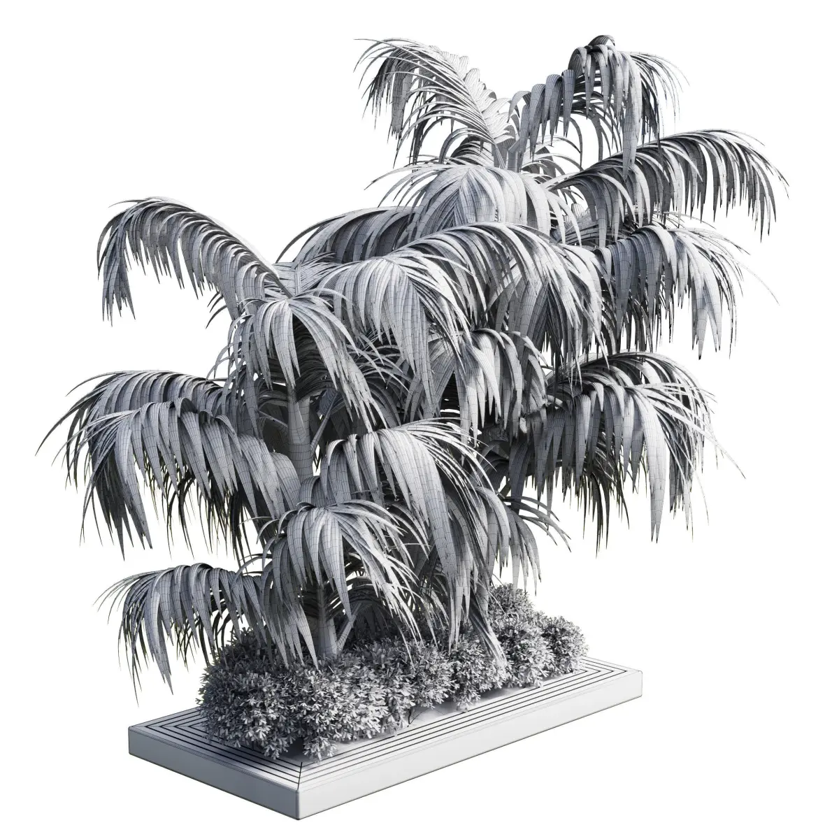 Collection Outdoor plant in garden tree palm- wood pot 02 Low-poly 3D model
