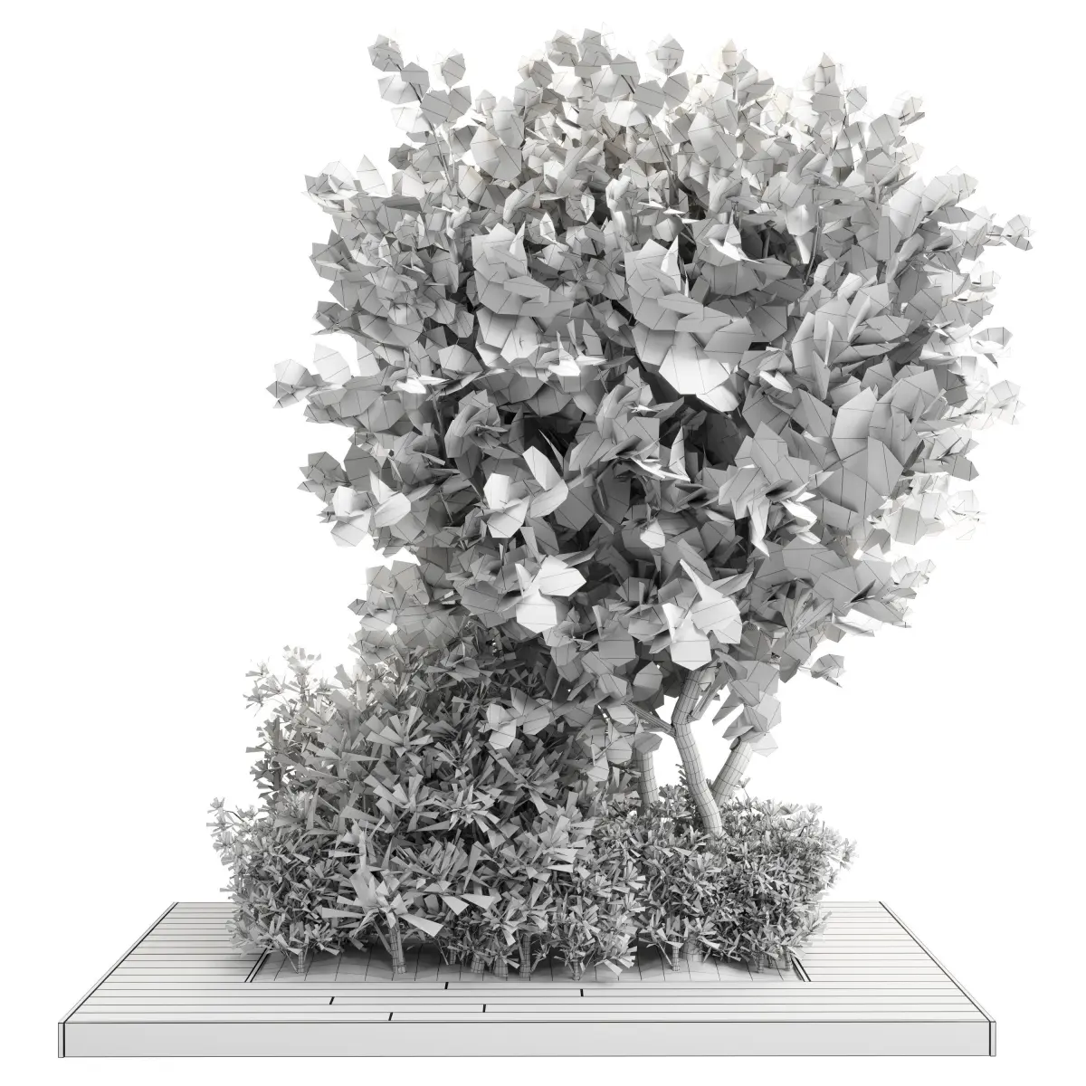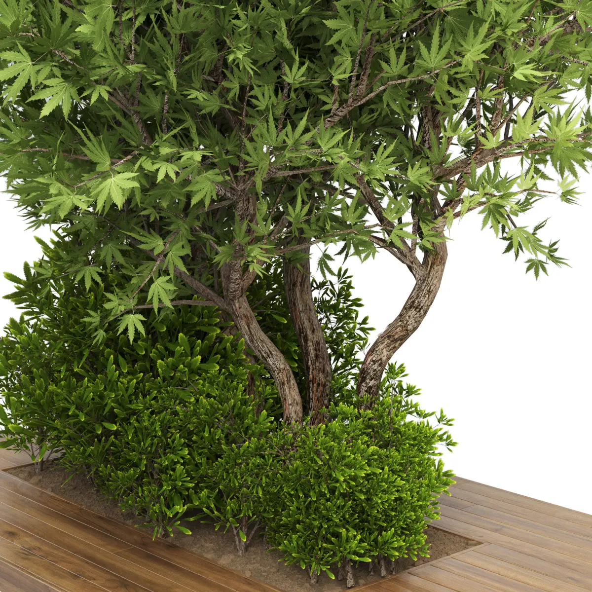 Collection Outdoor plant in garden wood pot 01 3D model
