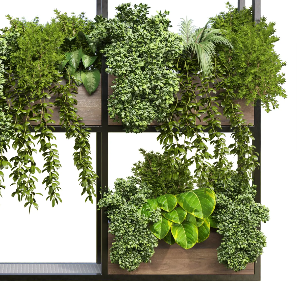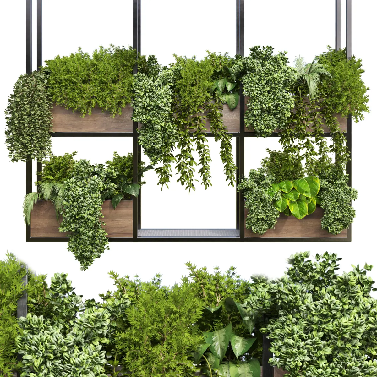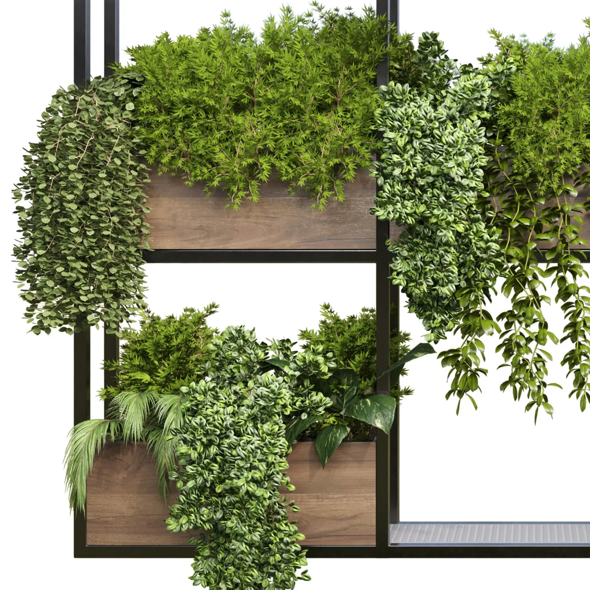 collection Outdoor plants hanging pot wood bax vase 07 3D model