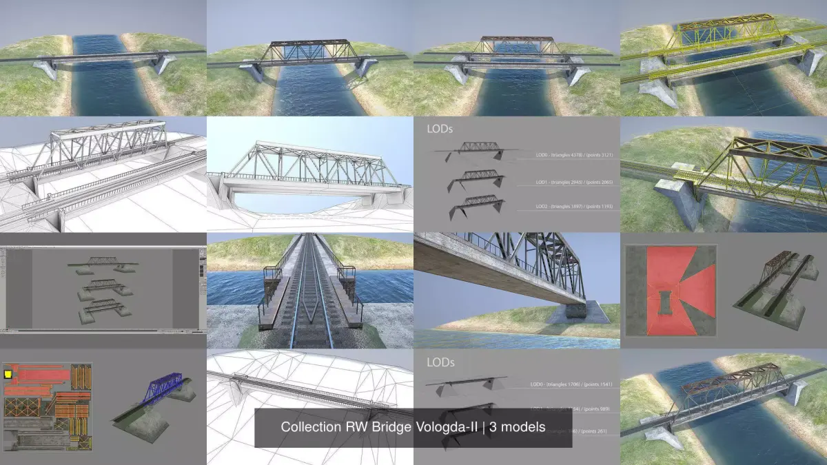 Low-poly 3D model Railway Bridge with LODs