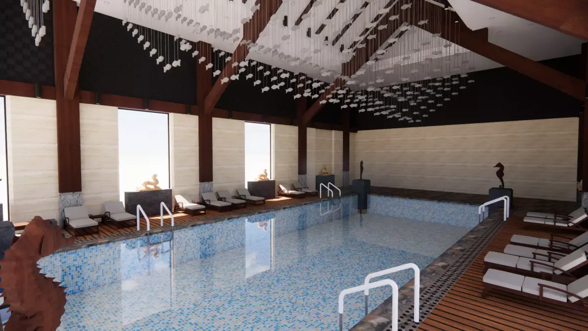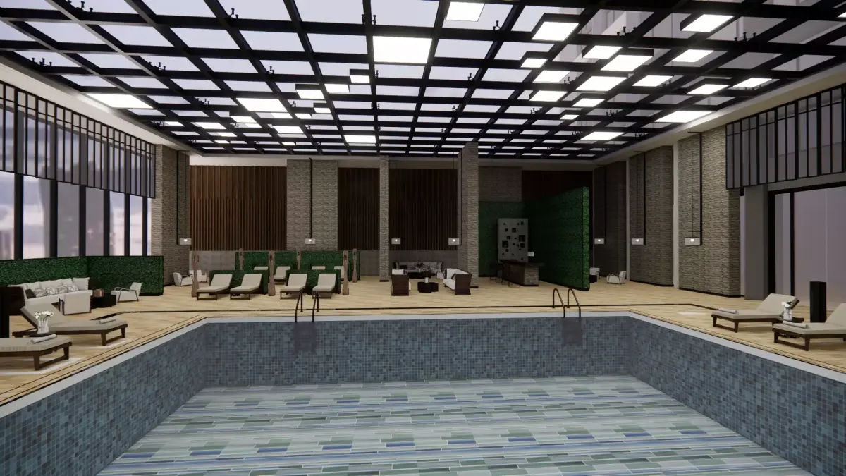 realistic swimming pool. Model was built in SketchUp and rendered with Enscape plug in for SketchUp. Components and lighting are from Enscape library and all renders are from Enscape plug in. Model built to scale using mm.