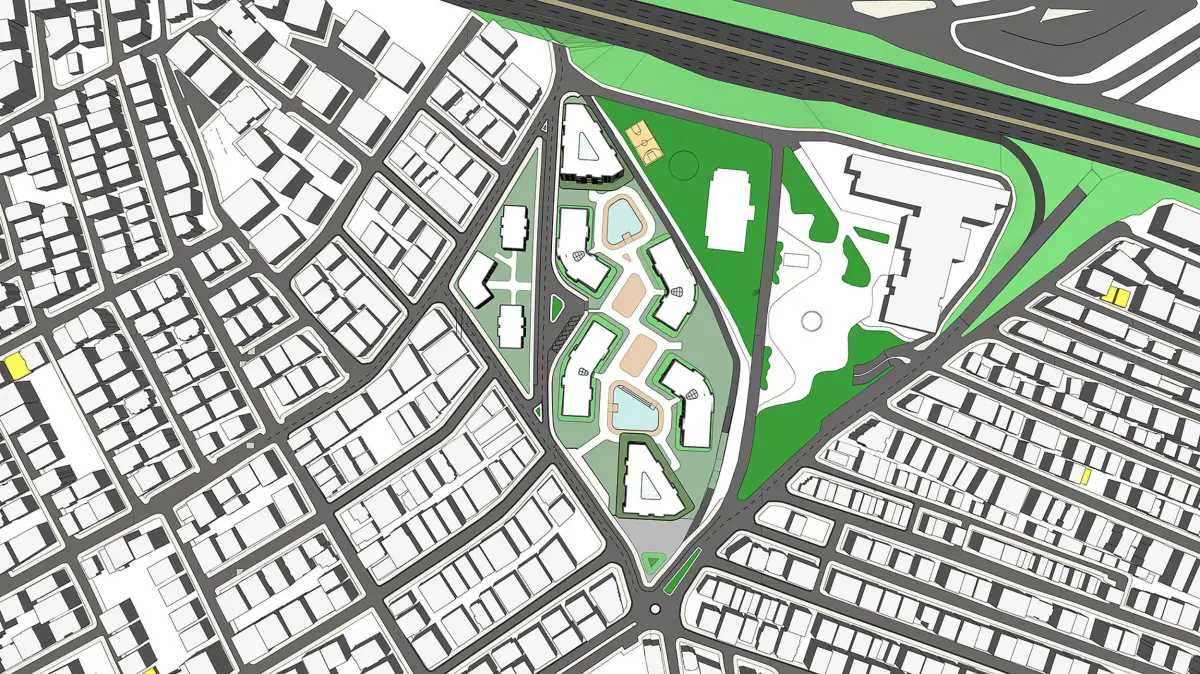 Collective Housing Project. All buildings are attached. Building , terraces, windows, wooden facade, doors, interior and exterior landscapes, all spotlights etc. Drawings are detailed and clean. All materials are assigned. Grouped by building, windows, door etc. Nearby detailed land and buildings are included.
