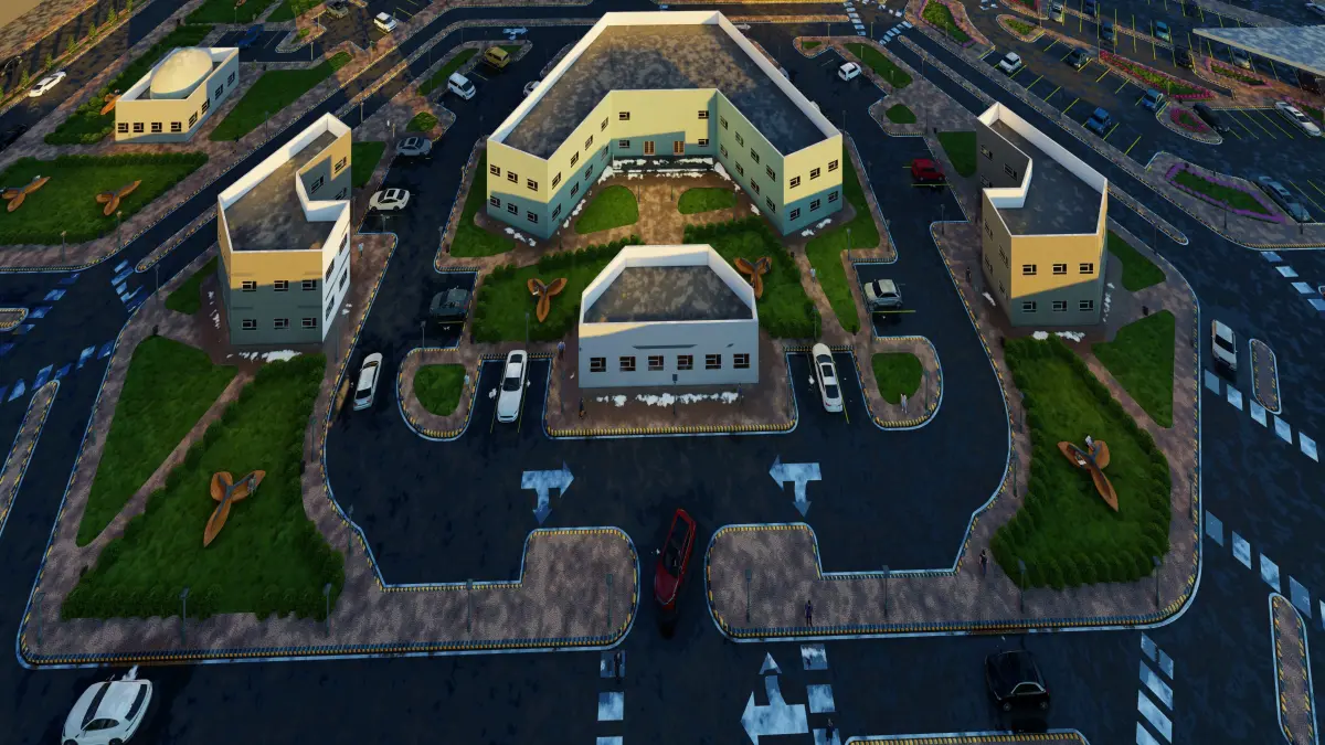 Designing a college of medicine consisting of three departments: 1 College of Human Medicine + A2 College of Dentistry + 3 College of Pharmacy, (the colleges are divided into each college in a specific place with a cafeteria, library, study halls, as well as offices of department heads and department offices for educational training of the doctor and teachers), and there is also An educational hospital, private housing for male students, private housing for female students, a mosque, warehouses, a multi-purpose hall, a large theater, and also the administrative center in the middle of them. There is a parking lot at the front entrance consisting of 200 parking spaces and also 200 parking spaces distributed to the rest of the buildings....... (Note: The focus was on this project On general site planning without paying attention to building facades)