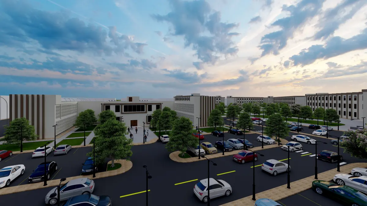 Designing a college of medicine consisting of three departments: 1 College of Human Medicine + A2 College of Dentistry + 3 College of Pharmacy, (the colleges are divided into each college in a specific place with a cafeteria, library, study halls, as well as offices of department heads and department offices for educational training of the doctor and teachers), and there is also An educational hospital, private housing for male students, private housing for female students, a mosque, warehouses, a multi-purpose hall, a large theater, and also the administrative center in the middle of them. There is a parking lot at the front entrance consisting of 200 parking spaces and also 200 parking spaces distributed to the rest of the buildings....... (Note: The focus was on this project On general site planning without paying attention to building facades)
