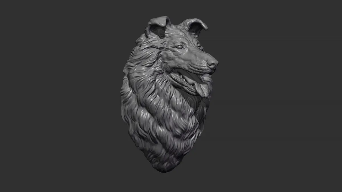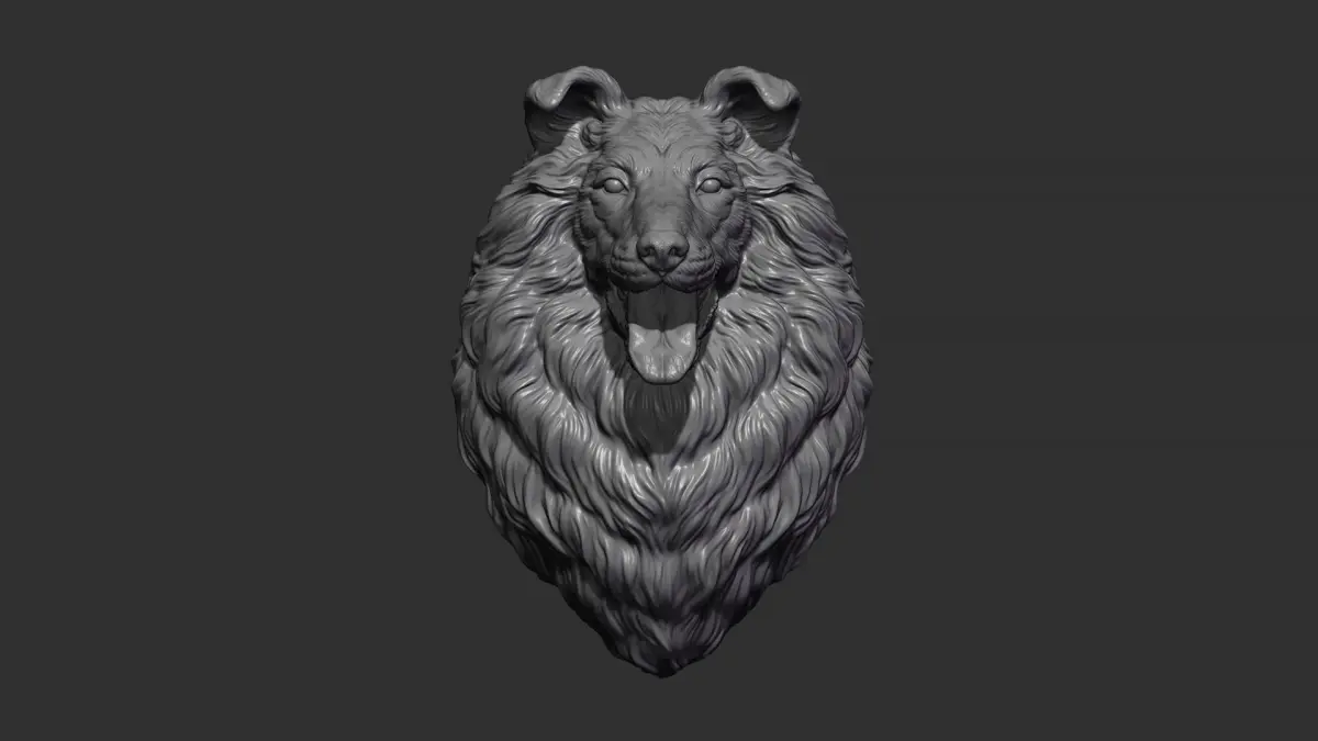 600K STL, OBJ triangulated mesh, Collie Dog head on the wall