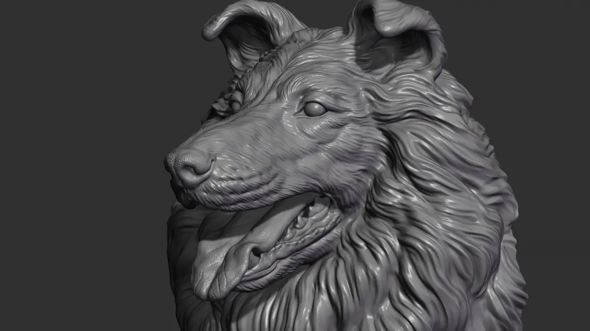 600K STL, OBJ triangulated mesh, Collie Dog head bust marged