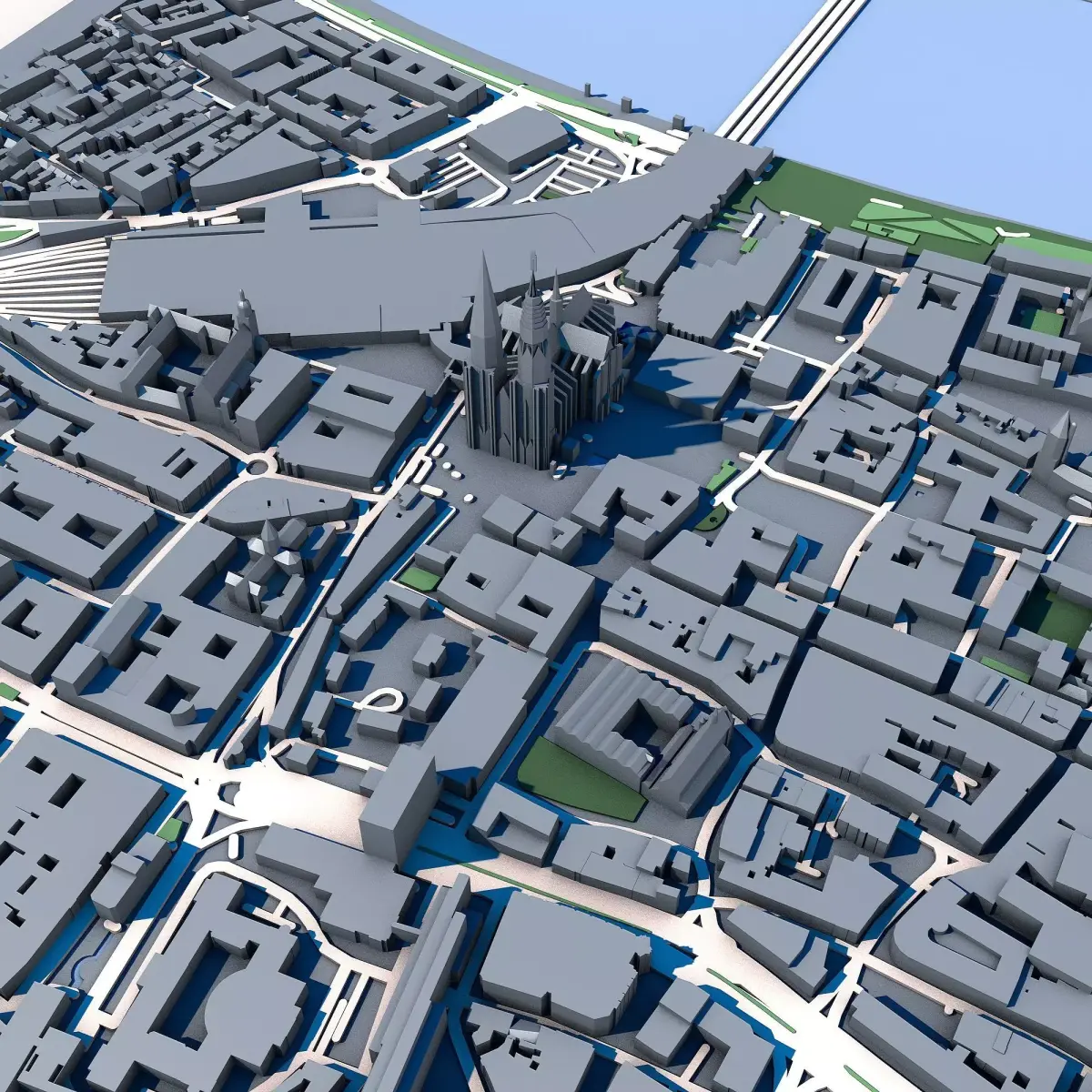 Cologne Cityscape 3D Model – Cologne Cathedral & Rhine River – German Urban Landscape
