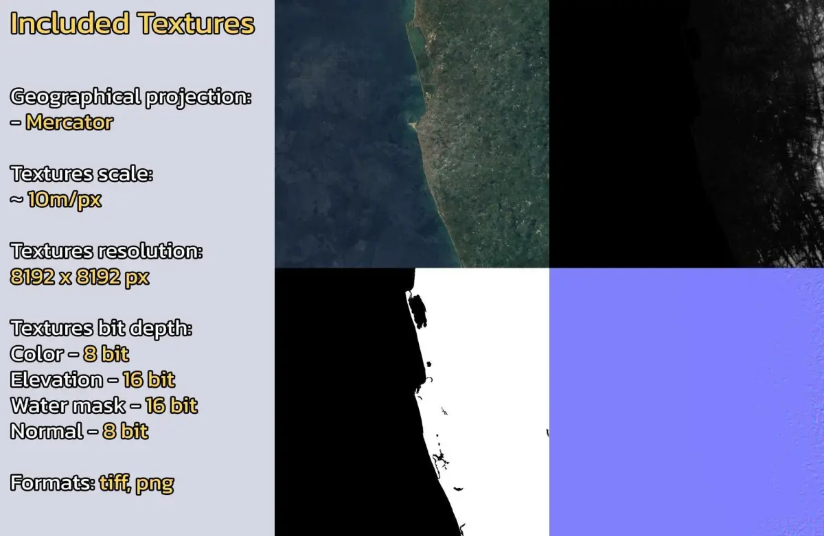 - Textures resolution: ~10m/px