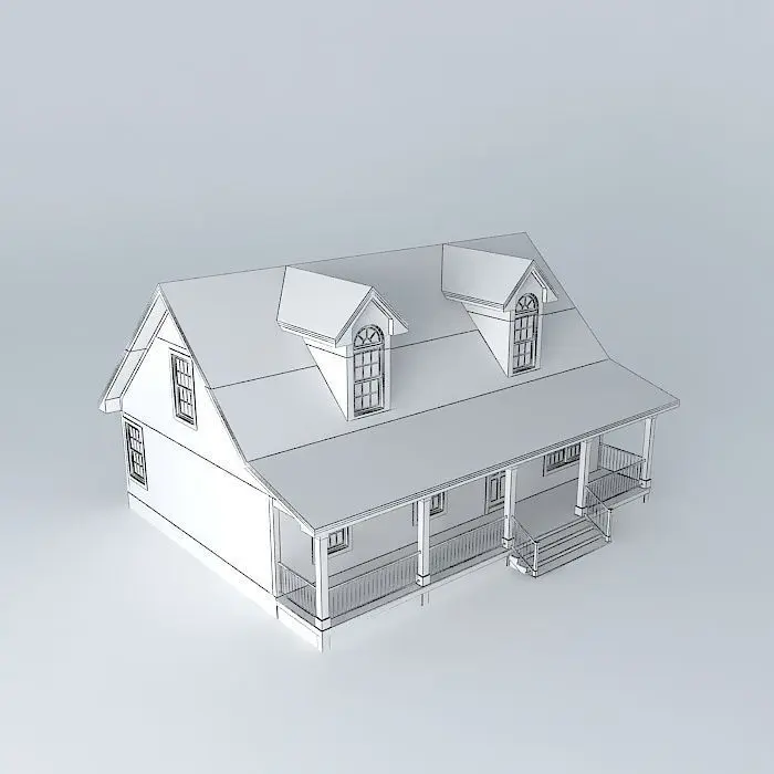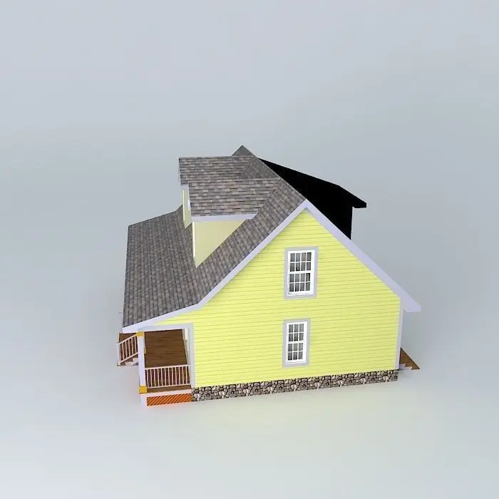 This 3D model was originally created with Sketchup 8 and then converted to all other 3D formats. Native format is .skp 3dsmax scene is 3ds Max 2016 version, rendered with Vray 3.00 This Cape Cod style home may look like 4 walls and a roof right? It is a plain ole' rectangle eh? On the outside, well, it is. I invite you to come on inside to see its uniquely unusual interior layout with a diagonal central hallway, diagonal steps, and closets. The house has 5 bedrooms, 2.5 baths, and more. Enter from the front porch into a carpeted living room. Beyond is a tiled island kitchen/ dining. The island is actually the pantry. The basement is under the stairs. The laundry is located on the main floor of this house. I really do hope you enjoy this house and please rate it :)