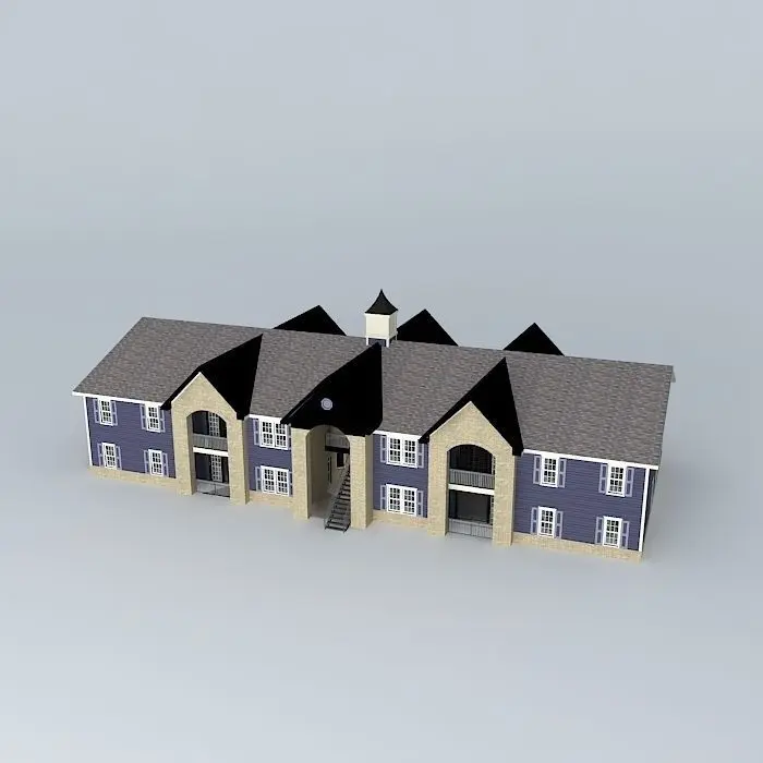 This 3D model was originally created with Sketchup 8 and then converted to all other 3D formats. Native format is .skp 3dsmax scene is 3ds Max 2016 version, rendered with Vray 3.00 These are house -like 3 bedroom apartments! There are eight units in this building. Admists the entryway to the apartment, the first to greet you is the coat closet. The dining room is right in front by the double window across from the gourmet kitchen. There is a narrow pantry next to the refridgerator. Also, the H/VAC system is there! The largest room of the whole house is the living room. It is also is the room with the access tot he balcony. Beyond are the private living quarters of 3 bedrooms and 2 bathrooms. However, there are laundry hookups available directly inside the apartment itself! This is indeed a must-see! Oh, yeah, the apartments have their own water heaters and their own storage lockers. I hope you can find what you like about the apartments. My goal is to make it look like a house and make it so people don't mind living in apartments because of such home-like nature. Enjoy and please rate!