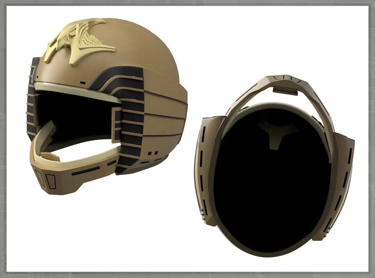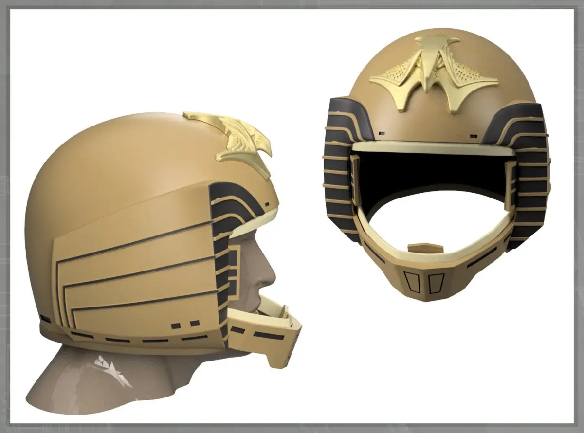 A rare unseen production design made for, it seems, the 1980 Galactica series.The current internal size of the helmet is 10 inch ear-to-ear, and 11 inch deep. Resize to individual requirements.(I have since heard that it was used in a single episode of 1980 BSG.)