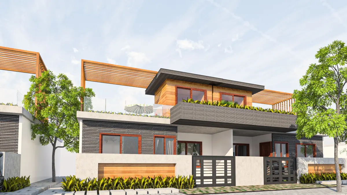 Colony Street House Elevation Architecture 3D modelReady to render using V-Ray 5, 3dsmax 2019-2024 scene of a Modern House Elevation