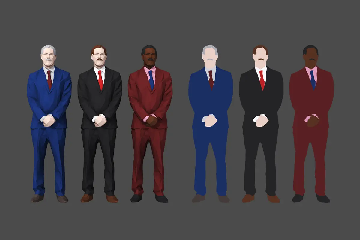 Natural posesare achieved by a combination of high quality human scans, photogrammetric processing, mesh simplification and optimization.