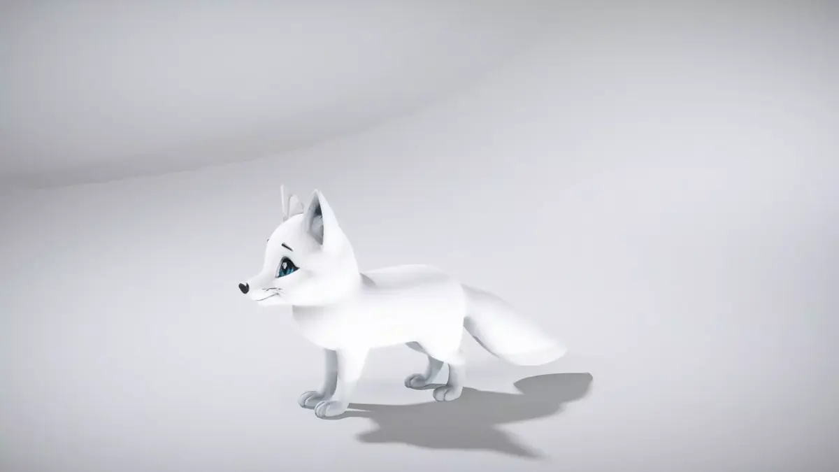 This 3D model of a colorful arctic fox features a soft, velvety white coat with cool blue shadowing, perfect for animation or games. Each model has 3 levels of detail with QUAD polygons: