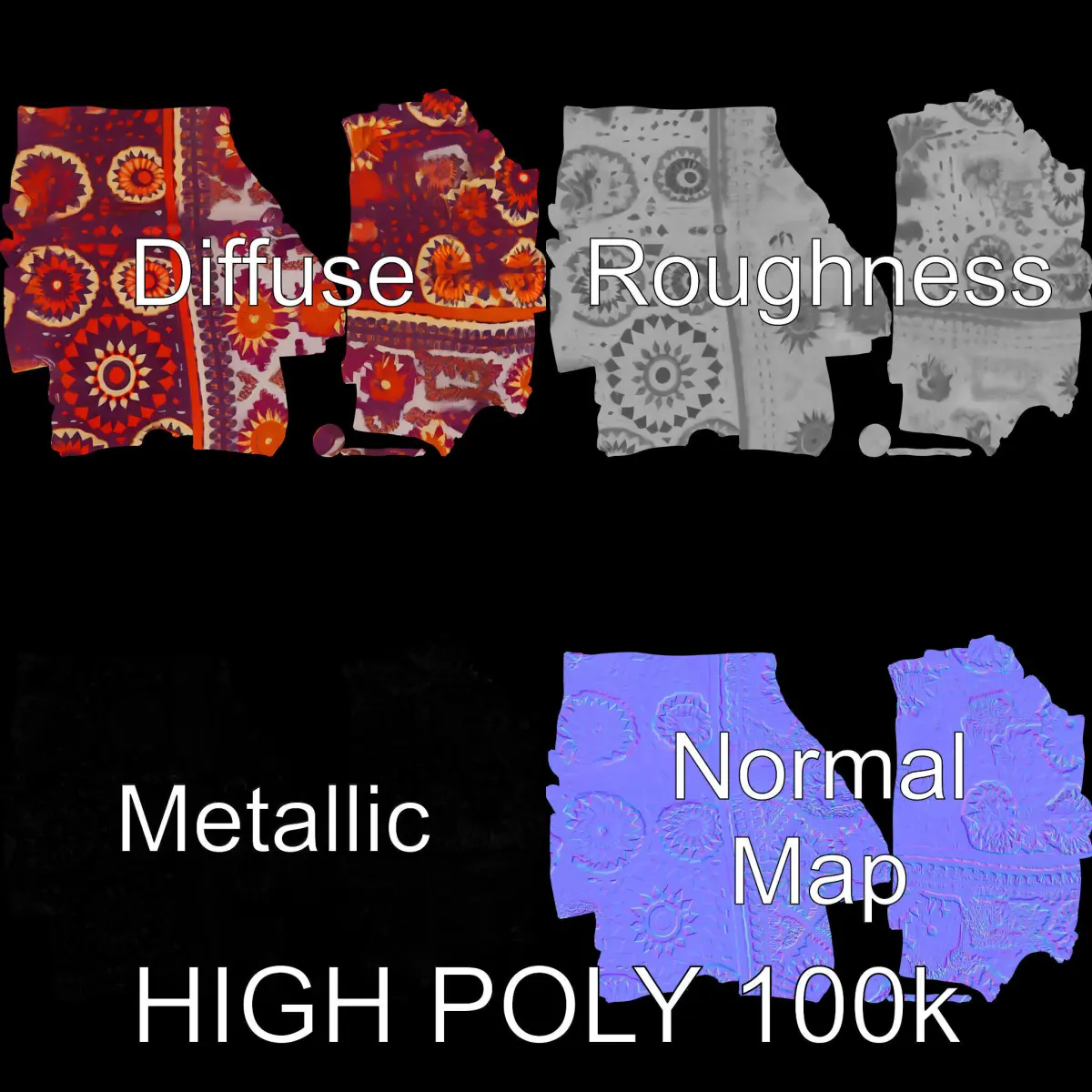 This versatile model pack features a colorful decorative pillow with high-quality details and three levels of detail. Ideal for interior designs, virtual staging, and furniture visualization. The PBR textures (Diffuse, NormalMap, Reflection/Roughness/Metallic) enhance realism, making it suitable for all modern rendering engines and game engines like Unity and Unreal. Textures are in 4096x4096 resolution for optimal quality. The models are fully unwrapped with no overlapping UVs.