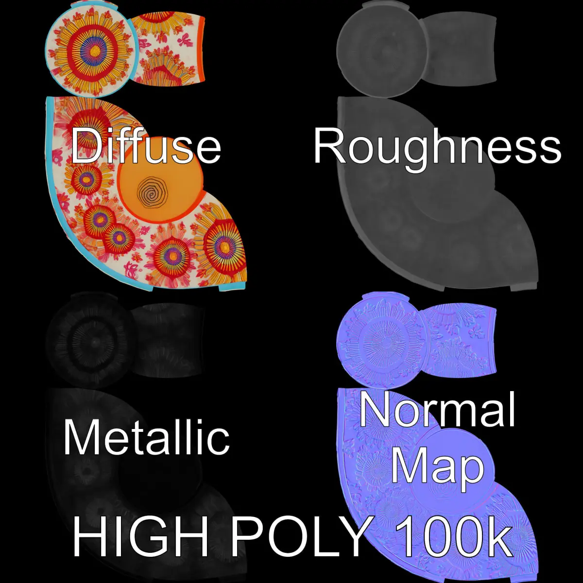 This model is compatible with all major rendering engines and game engines, including 3ds Max, Maya, Cinema 4D, Blender, Vray, Corona, Unity, and Unreal Engine. All textures are created with PBR standards and include Diffuse, NormalMap, and reflection/roughness/metallic textures, each at a 4096x4096 resolution.