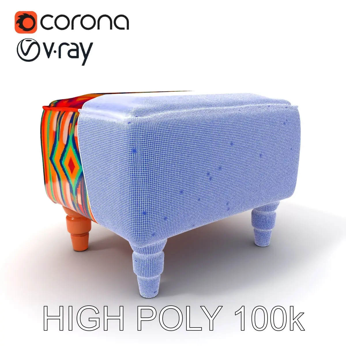 This versatile colorful ottoman model pack includes three levels of detail, accommodating different use cases from mobile games to high-quality rendering. Designed with vibrant, multi-colored geometric patterns, this model is perfect for adding a splash of color to virtual living spaces, retail interiors, or interactive exhibitions. The ottoman model is fully compatible with popular game engines like Unity and Unreal Engine, as well as rendering software such as 3ds Max, Maya, and Blender, ensuring seamless integration into any project.