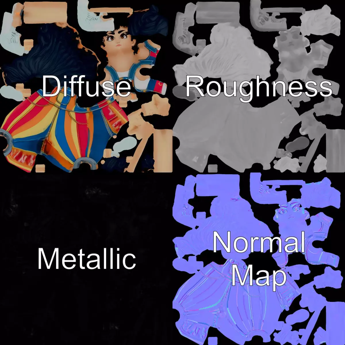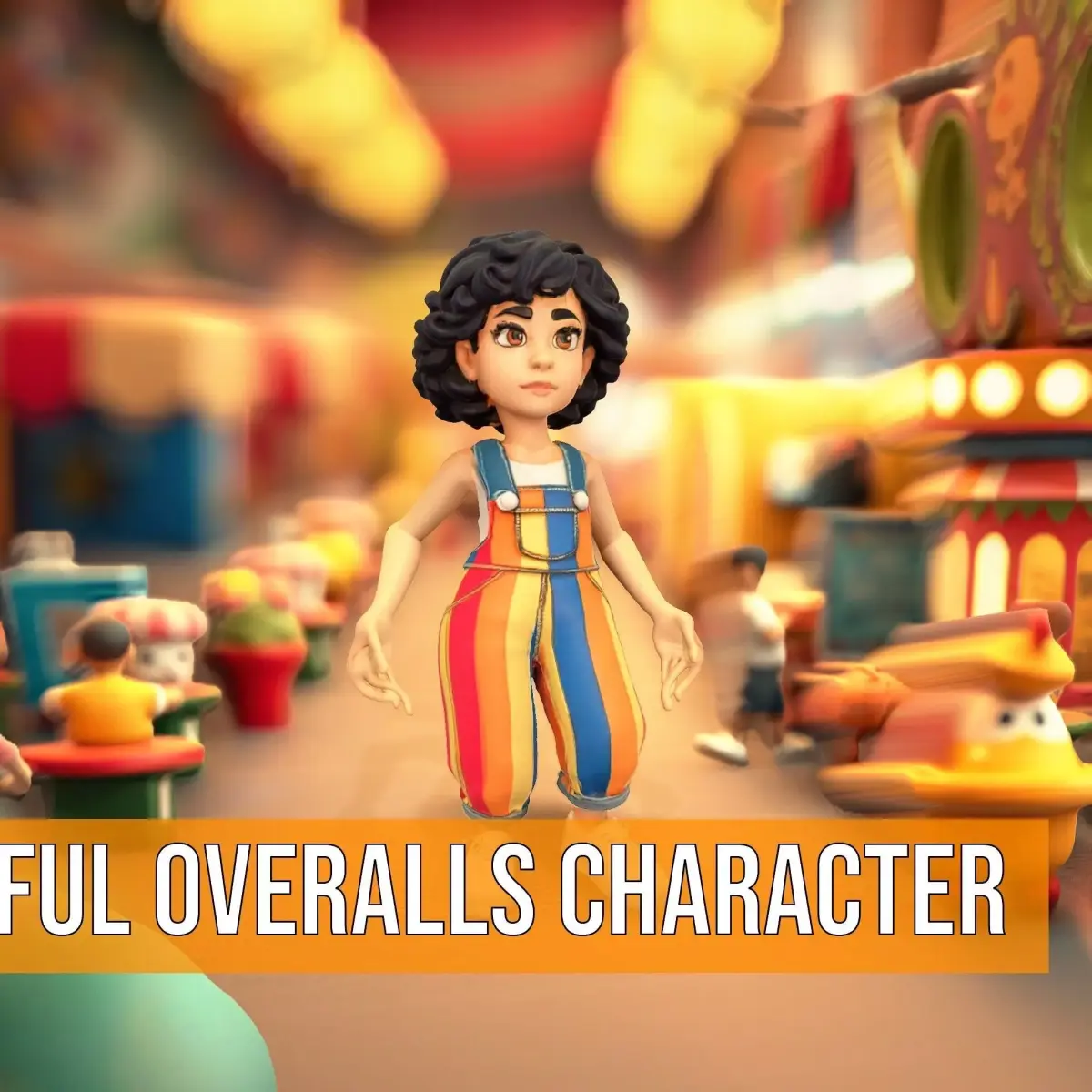 This vibrant 3D character model features a playful design with colorful striped overalls, curly hair, and sneakers, perfect for adding charm to animations, games, or multimedia projects. Each model has 3 levels of detail: low-poly(1000 triangles for mobile), middle-poly(10 000 triangles for environment), and high-poly(100 000 triangles), which allows for the use of this model in production rendering (such as 3ds Max, Maya, Cinema4D, Blender, V-Ray/Corona/Cycles and all others), game engines (Unity and Unreal compatible), and interactive presentations, providing a choice of detail based on the LOD System principle. The model's textures are PBR, with Diffuse, NormalMap, and reflection/roughness/metallic options, suitable for any modern rendering engine. All models are accurately unwrapped with no overlapping UVs. Please like and leave a comment if you enjoyed the model. All textures are 4096*4096 in size.