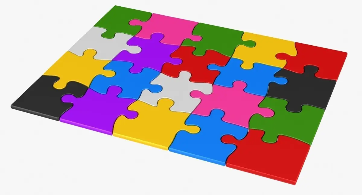 Colorful Puzzle Pieces. The model is 25 Centimeters.
