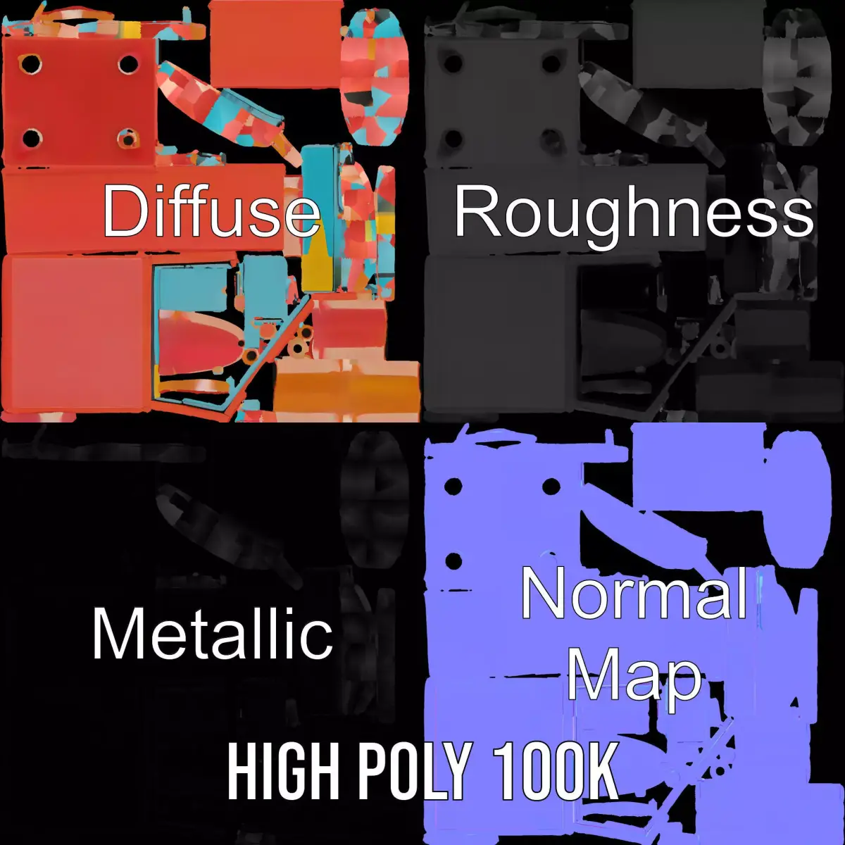 This colorful retro nightstand model pack features a vibrant two-drawer design with unique color accents, perfect for adding a playful touch to modern interiors. Each model has 3 levels of detail: low-poly (1000 triangles for mobile), middle-poly (10,000 triangles for environment), and high-poly (100,000 triangles), which allows for the use of this model in production rendering (such as 3ds Max, Maya, Cinema 4D, Blender, Vray/Corona/Cycles and all others), game engines (Unity and Unreal compatible), and interactive presentations, providing a choice of detail based on the LOD System principle. Ideal for children's rooms, game environments, and virtual staging. The model's textures are PBR, Diffuse, NormalMap, and reflection/roughness/metallic, suitable for any modern rendering engine. All models accurately unwrapped with no overlapping UV. Textures are 4096x4096 in size. The first image is the reference used for creating the 3D model. It is important to carefully evaluate the quality of the model by examining the preview images that display the topology and polygonal mesh. These previews (WIRE and WEB 3D Preview) clearly demonstrate how accurately the model matches the original reference and how well the geometry has been executed. If you like the model, please leave a comment and rate it!