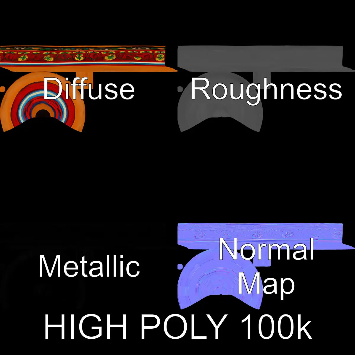 This 3D model pack offers detailed representations of a colorful spinning top, perfect for educational animations, toy design prototypes, or vibrant game settings. Explore three levels of detail with options for mobile, environment, and production rendering. The model's PBR textures include Diffuse, NormalMap, and reflection/roughness/metallic maps, ensuring high compatibility with modern rendering engines like Unity and Unreal. The model features non-overlapping UVs and textures sized at 4096x4096 pixels for high visual fidelity. The first image is the reference used for creating the 3D model. It is important to carefully evaluate the quality of the model by examining the preview images that display the topology and polygonal mesh. These previews (WIRE and WEB 3D Preview) clearly demonstrate how accurately the model matches the original reference and how well the geometry has been executed. Like and comment if you enjoy the model!