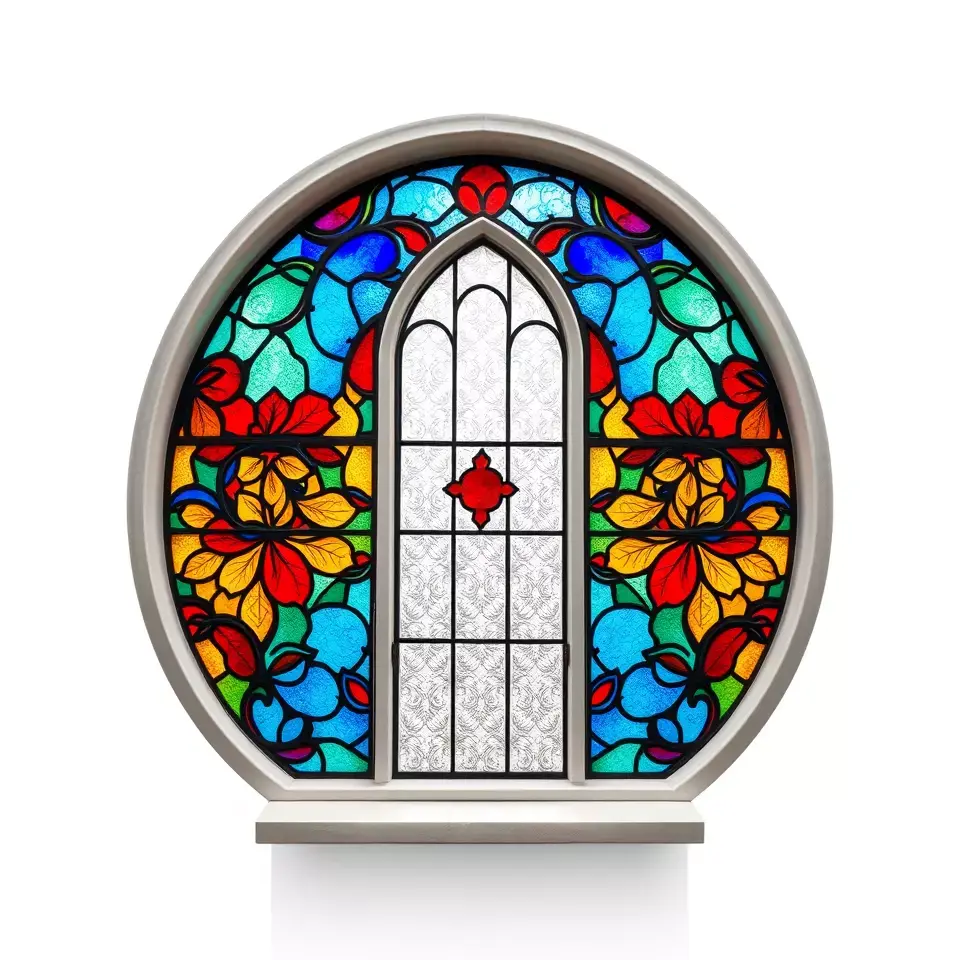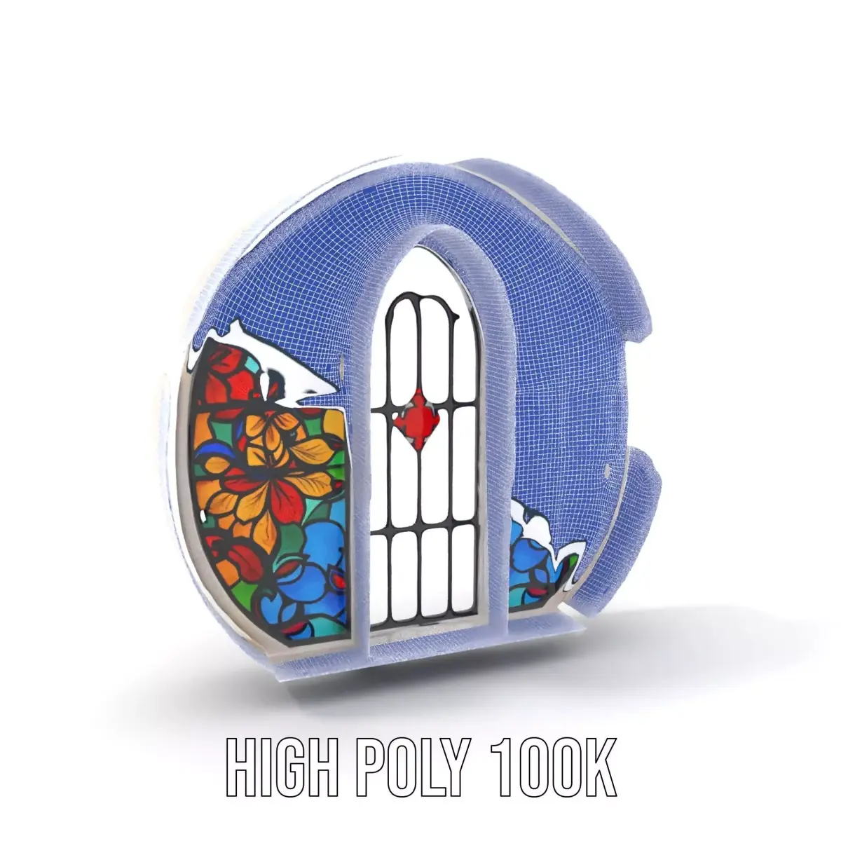 This vibrant stained glass model combines an intricate floral design with radiant colors. Perfect for architectural visualization, historical reconstructions, and artistic projects, this model enhances any scene with its elegant craftsmanship.