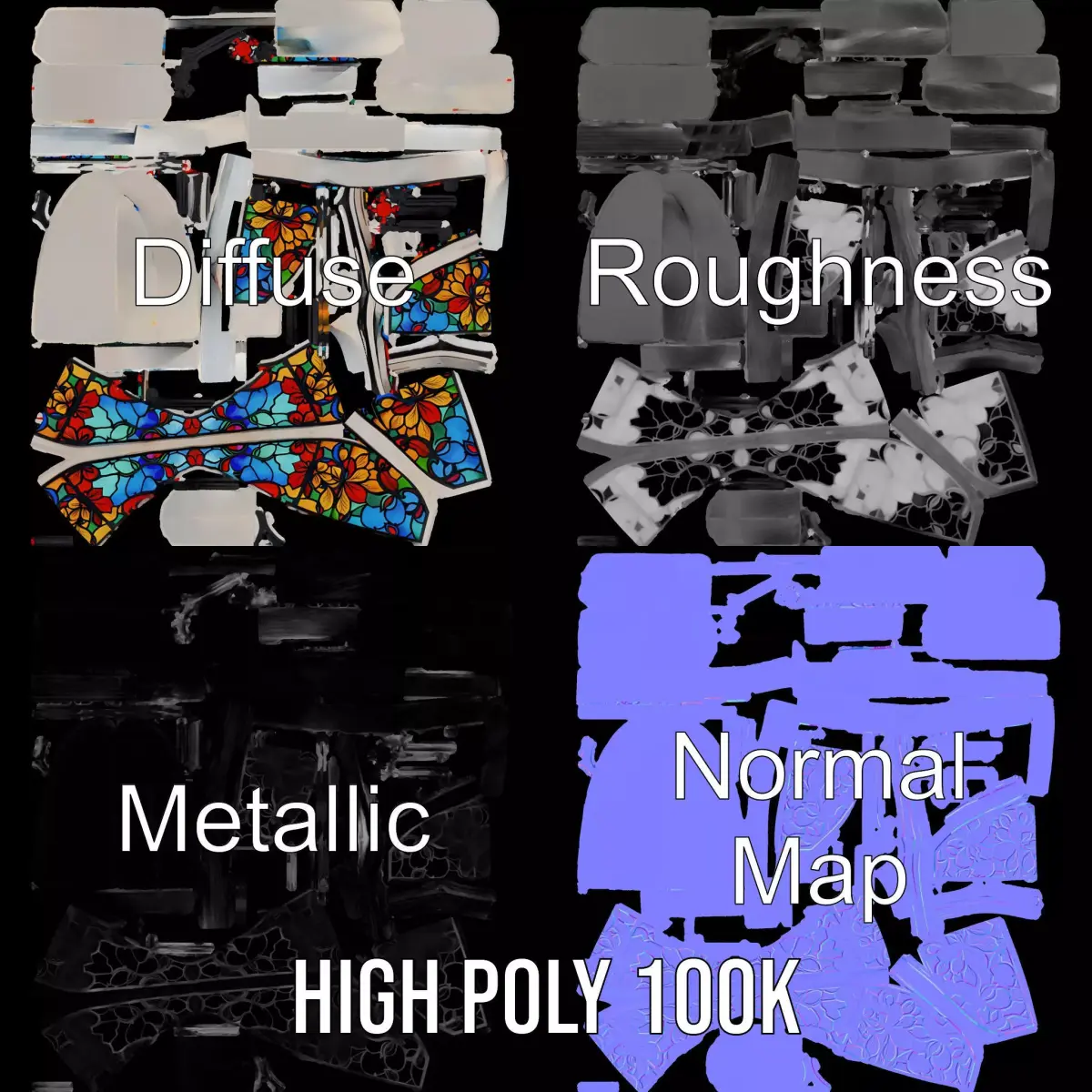 The model's textures are PBR, Diffuse, NormalMap, and reflection/roughness/metallic, which are suitable for any modern rendering engine. All models are accurately unwrapped with no overlapping UVs. The textures are 4096*4096 in size.