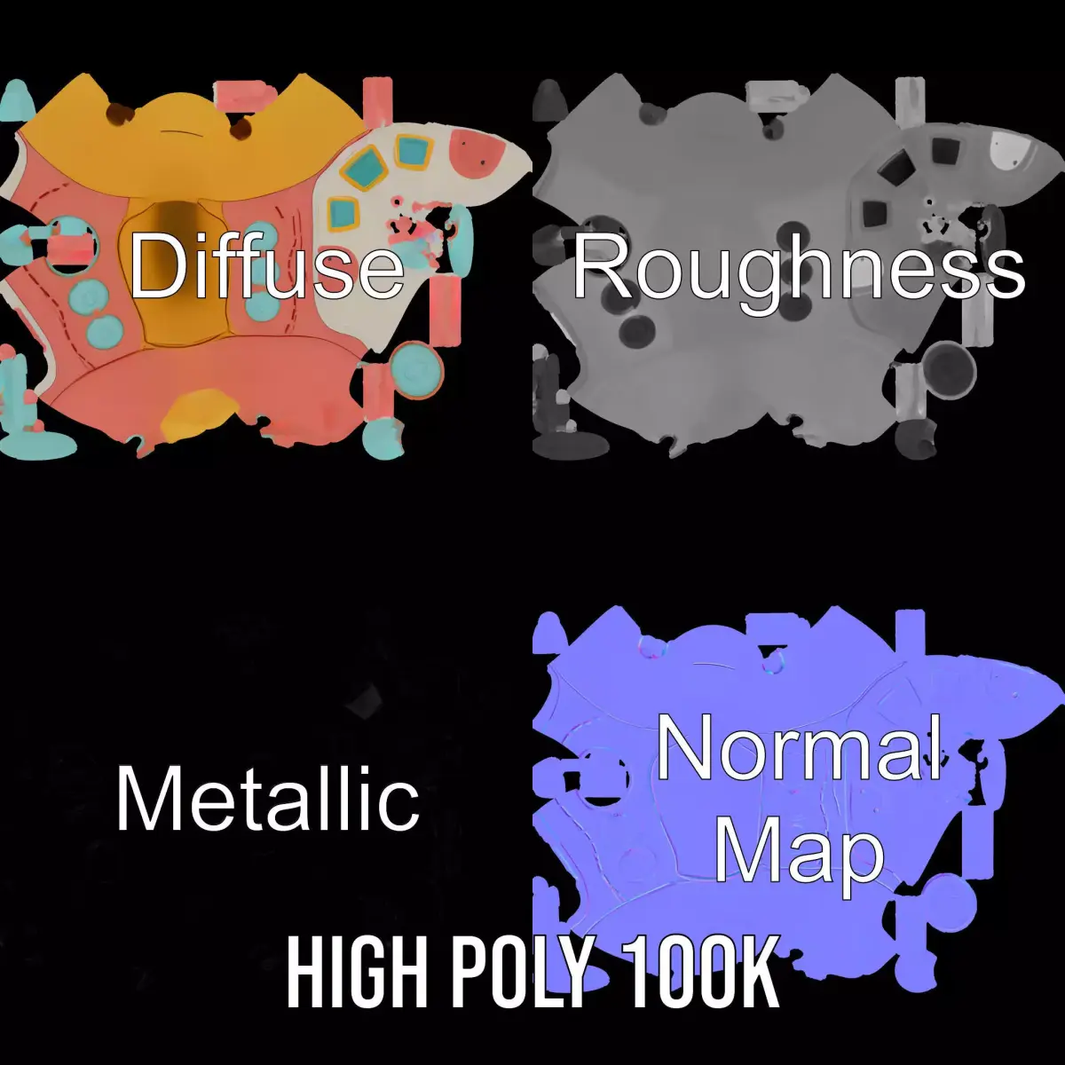 This 3D model represents a vibrant and playful submarine toy, perfect for animated environments or children's games. With its bright colors and rounded shapes, it adds a joyful touch to any scene. The model is highly versatile with three levels of detail: low-poly (1,000 triangles) for mobile applications, middle-poly (10,000 triangles) for environmental use, and high-poly (100,000 triangles) for production rendering. It is compatible with major 3D software such as 3ds Max, Maya, Cinema 4D, and Blender, as well as game engines like Unity and Unreal. Each level is carefully generated to optimize visual quality and performance. The model features PBR textures including Diffuse, NormalMap, and reflection/roughness/metallic maps, ensuring realistic rendering across all modern engines. All UVs are accurately unwrapped with no overlapping. Textures are 4096x4096 in size, providing high-resolution detail. Perfect for use in animated children's content, toy store advertisements, or playful interior visualizations. If you enjoy the model, please like and leave a comment.