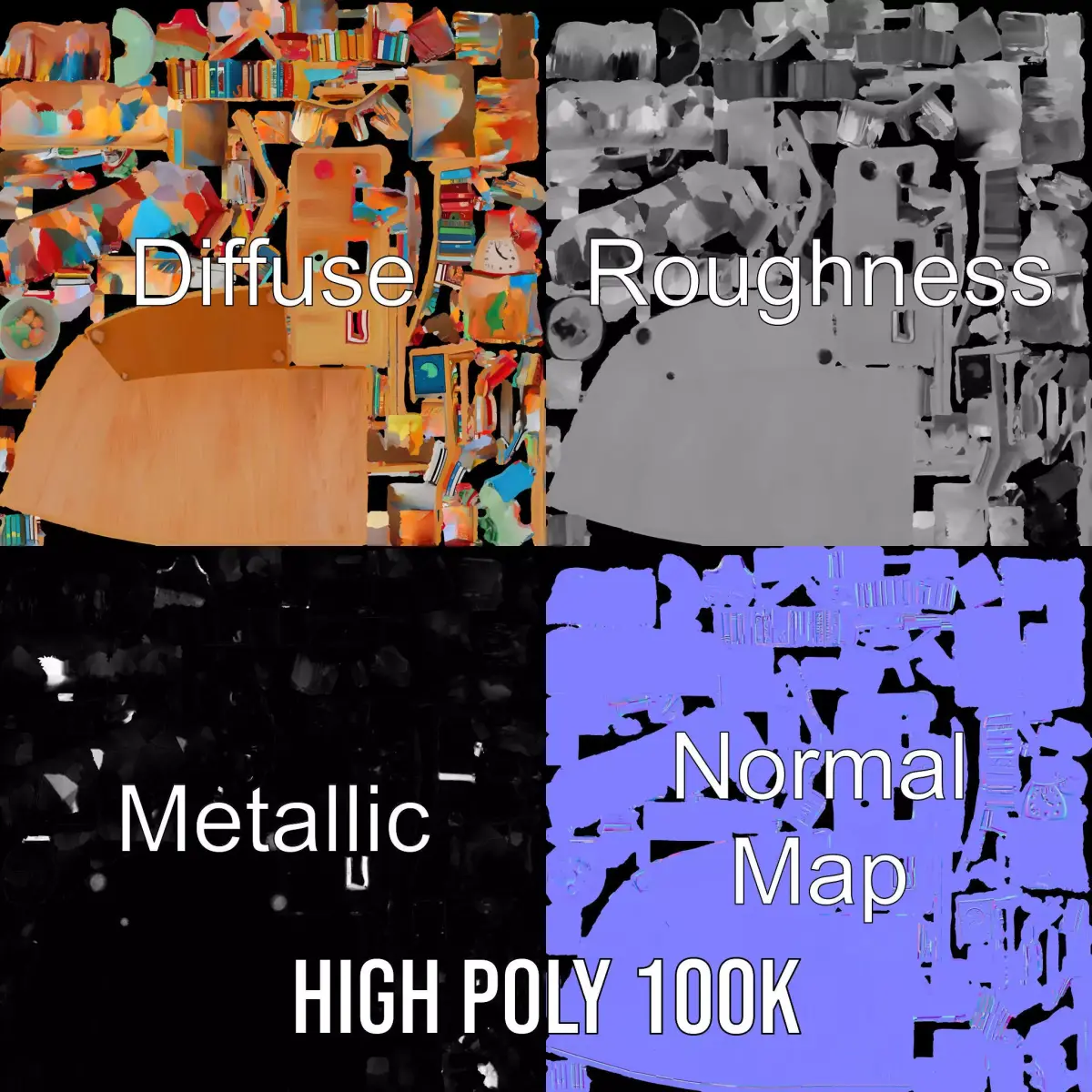 This 3D model pack features a vibrant and detailed wooden bookshelf filled with colorful books, plants, and decorative items. Each model comes in 3 LOD options: low-poly (1000 triangles) for mobile, middle-poly (10,000 triangles) for environments, and high-poly (100,000 triangles) for production rendering. The model is ideal for interior design visualizations, educational apps, or game environments. Textures are PBR with Diffuse, NormalMap, and reflection/roughness/metallic maps, all at 4096x4096 resolution. The model is accurately unwrapped with no overlapping UVs. The first image is the reference used for creating the 3D model. It is important to carefully evaluate the quality of the model by examining the preview images that display the topology and polygonal mesh. These previews (WIRE and WEB 3D Preview) clearly demonstrate how accurately the model matches the original reference and how well the geometry has been executed. Please like and leave a comment if you appreciate the model!